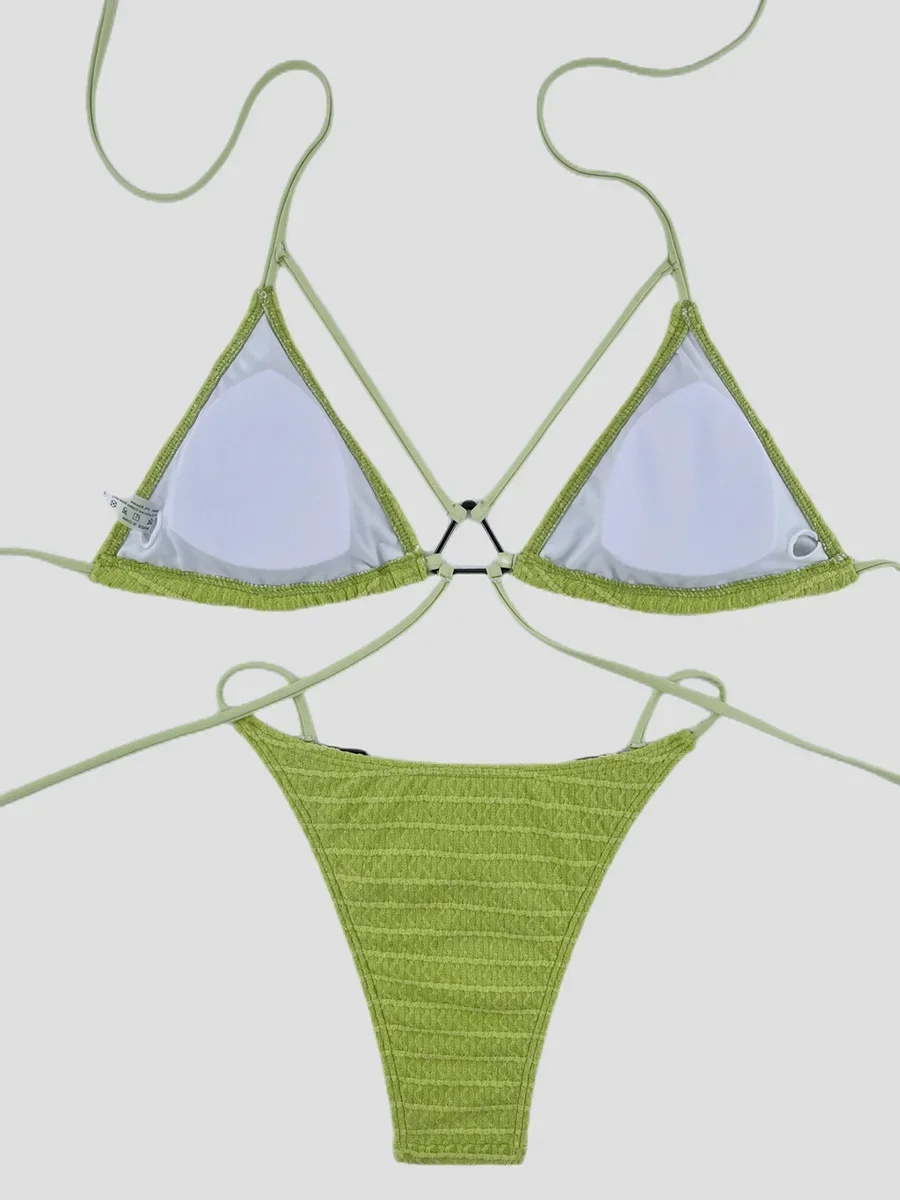 Wrinkled Halter High Cut Bikini Female Swimsuit Women Swimwear Two-pieces Bikini set Hollow Out Bather Bathing Suit Swim