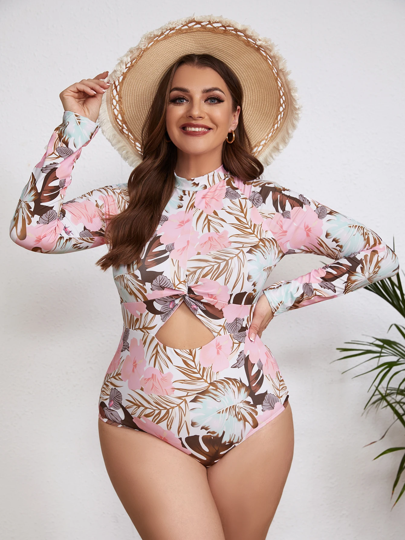 This long-sleeve one-piece swimsuit combines vintage style with modern functionality, featuring a front zipper for easy wear and adjustment. Crafted from durable, quick-drying fabric, it offers excellent coverage and protection during surfing or beach activities. The printed design adds a distinctive look, making it a stylish and practical choice for confident women seeking both performance and classic beachwear elegance.