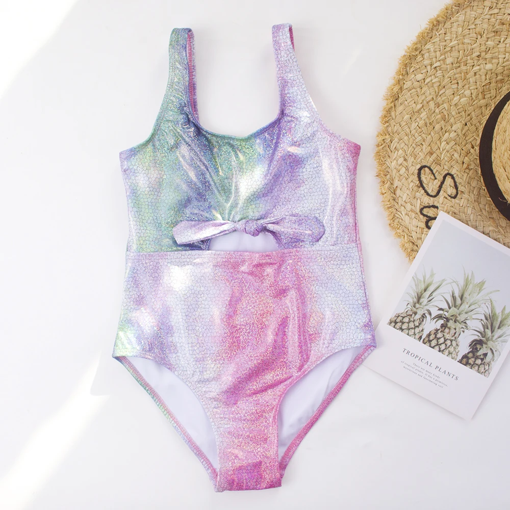 Shinning Print Summer Bow Deco Kids Girls One Piece Swimwear Swimsuit Kid Child Teen Girl Outdoor Beach Swimsuit Monokini