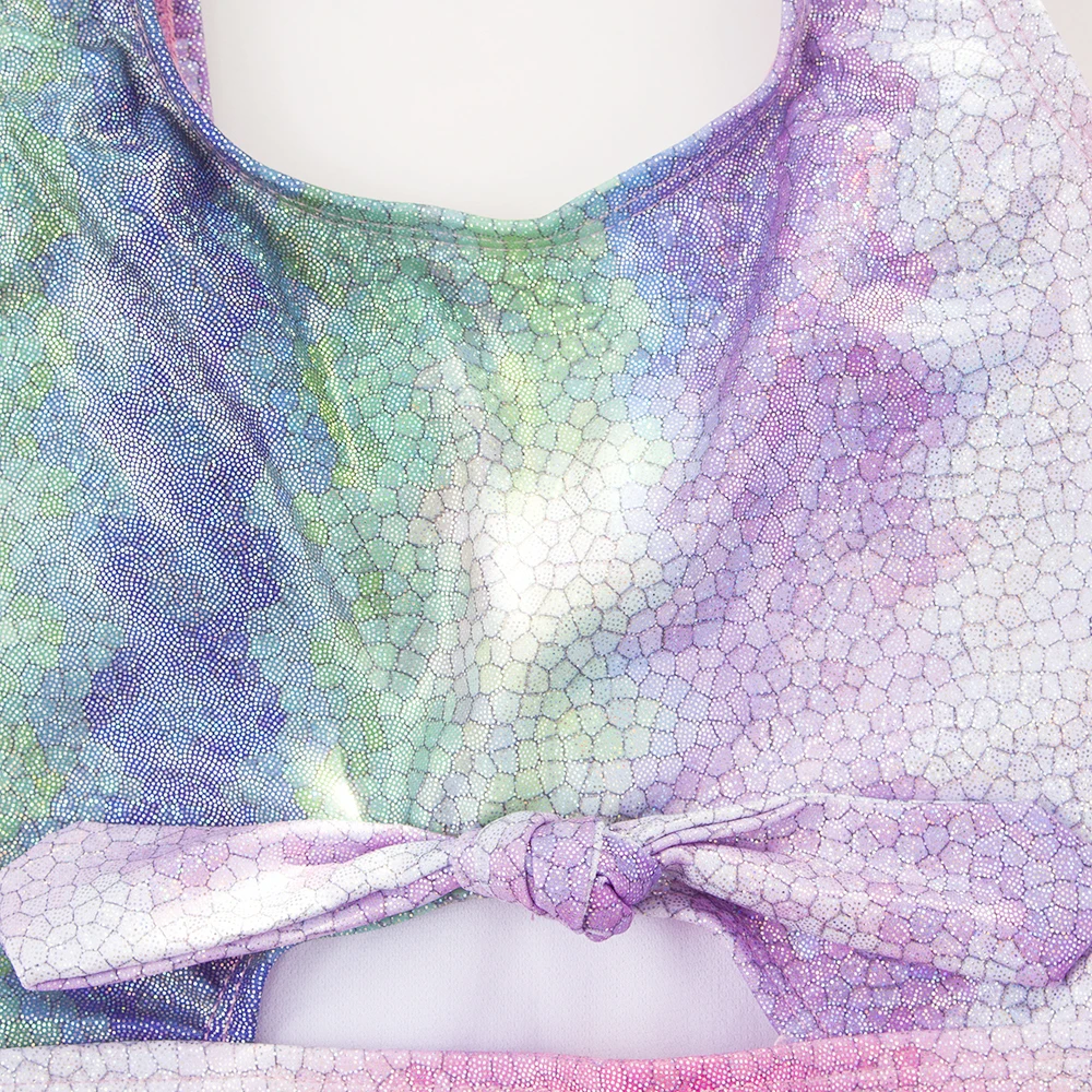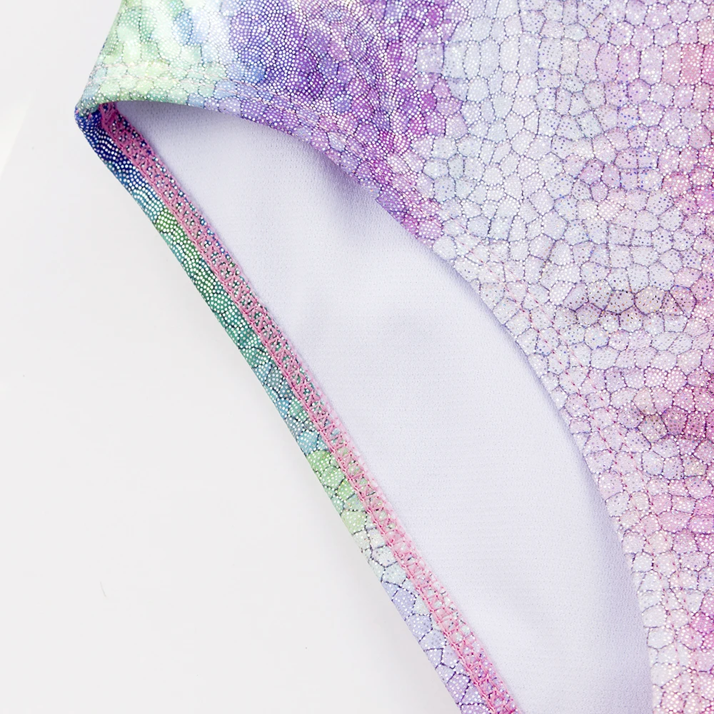 This vibrant one-piece swimsuit combines style and practicality for young swimmers. Featuring an eye-catching shimmering print and elegant bow decoration, it delivers a polished look that appeals to kids and teens alike. The streamlined monokini design offers comfortable coverage for beach days and pool sessions, while the quality construction ensures durability through regular wear. Perfect for outdoor water activities, this swimsuit balances fashion-forward details with the functionality young swimmers need.