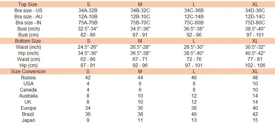 Note: this size chart is specifically for this swimsuit, please check size chart for each swimsuit you are purchasing from our store.