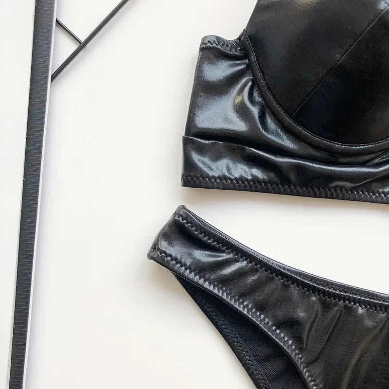 Shiny Faux Leather PU Bikini Women Swimsuit Bra Cup Bikinis Female Swimwear Two Pieces Bikini Set Push Up Bathing Suit Swim