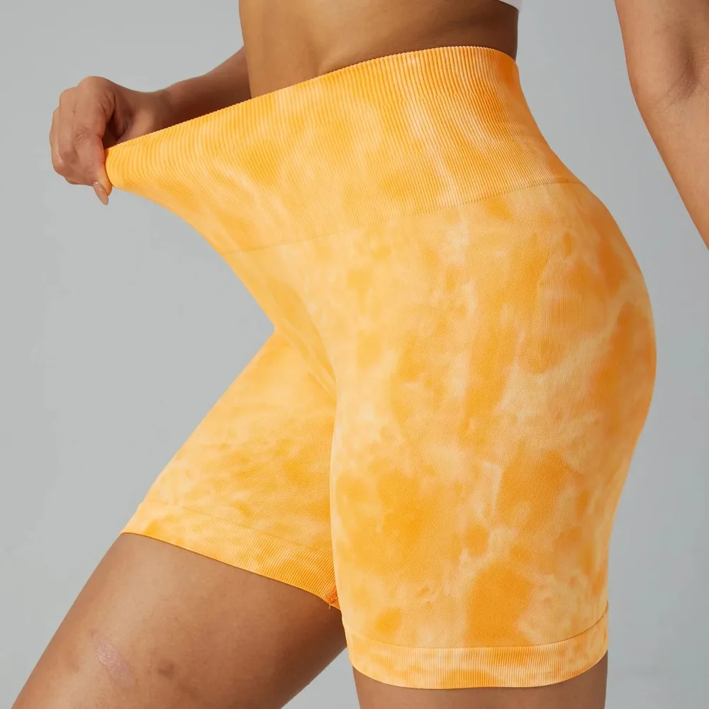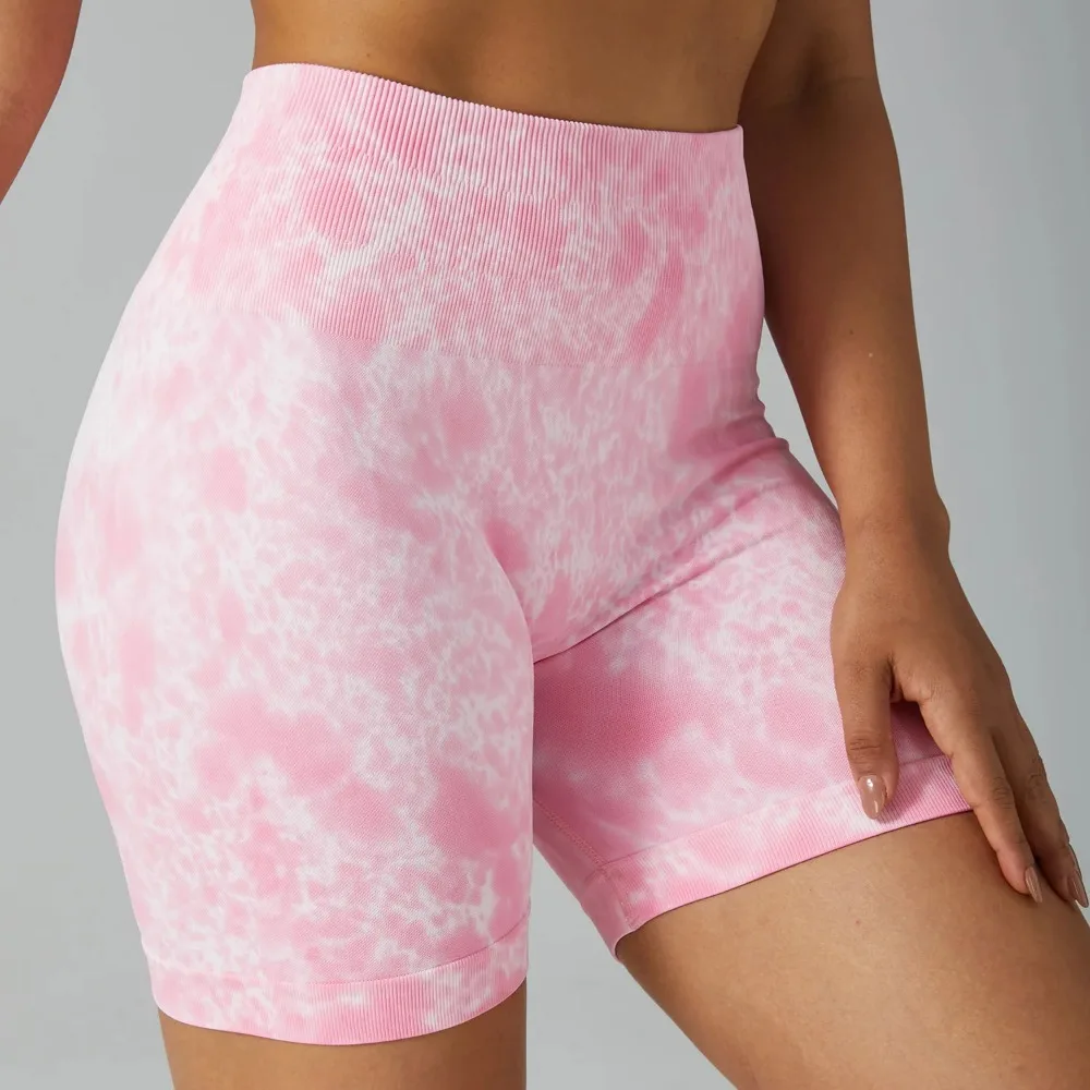 These seamless tie-dye shorts combine style with performance for your active lifestyle. Engineered with a push-up design that enhances your silhouette, they deliver superior support during yoga, running, and gym sessions. The seamless construction eliminates chafing and ensures a smooth fit under any outfit, while the breathable fabric keeps you cool and comfortable. Versatile enough for workouts or casual wear, these shorts offer the perfect blend of fashion and function for modern fitness enthusiasts.
