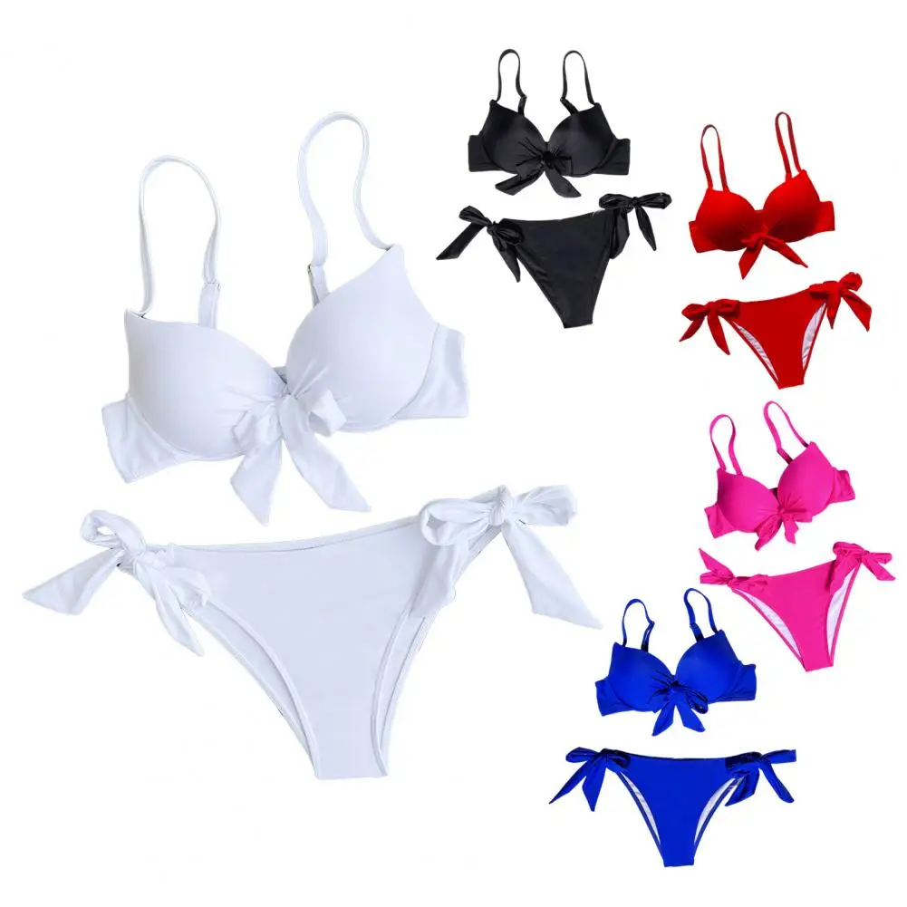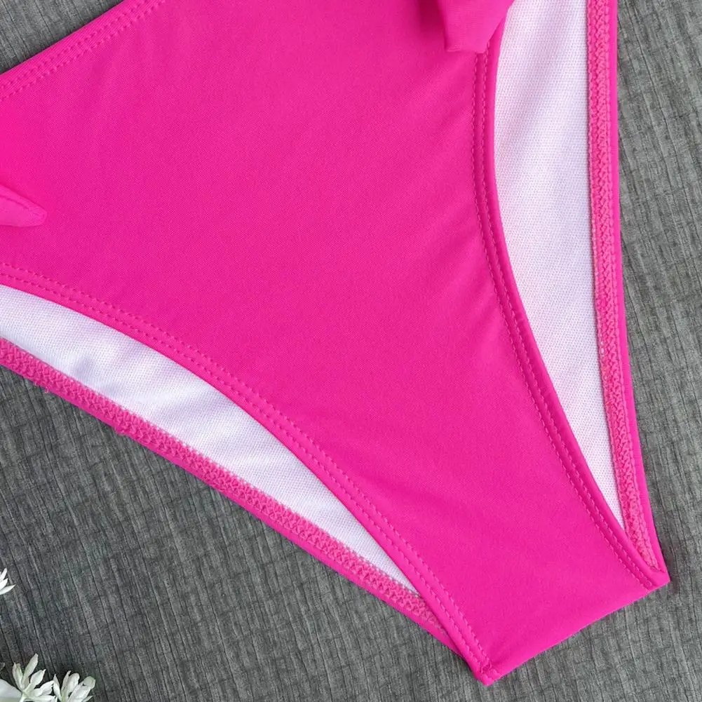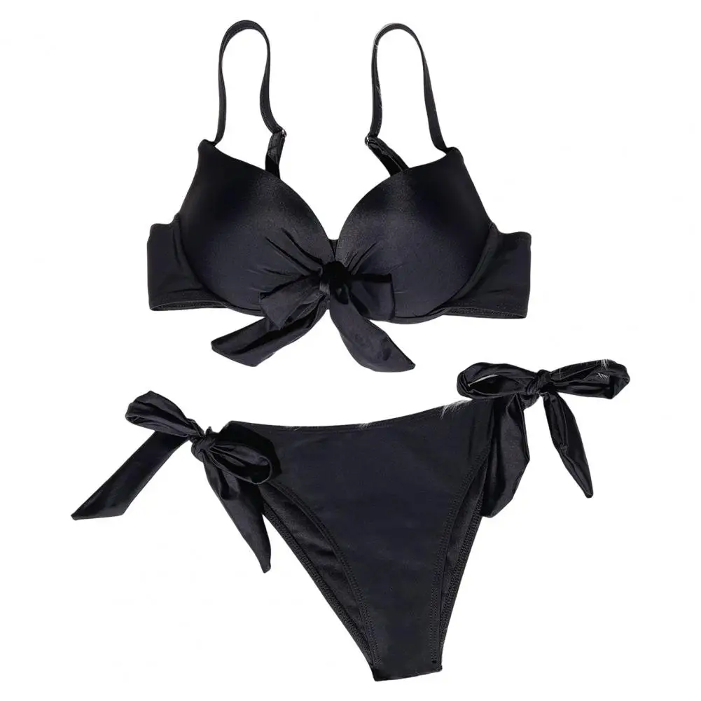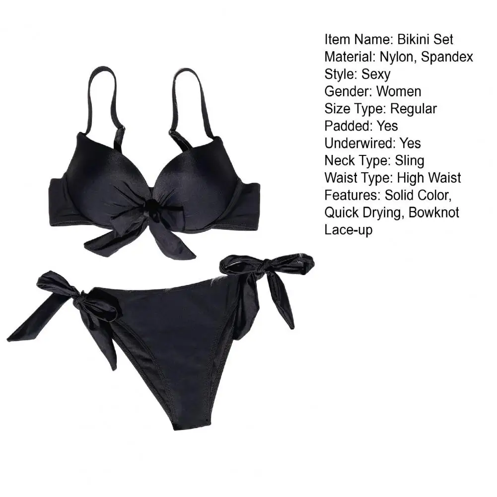 Summer Bikini Set Strappy Beachwear Women's Bikini Set Padded Sling High Waist Swim Solid Color Lace-up Summer Swimwear