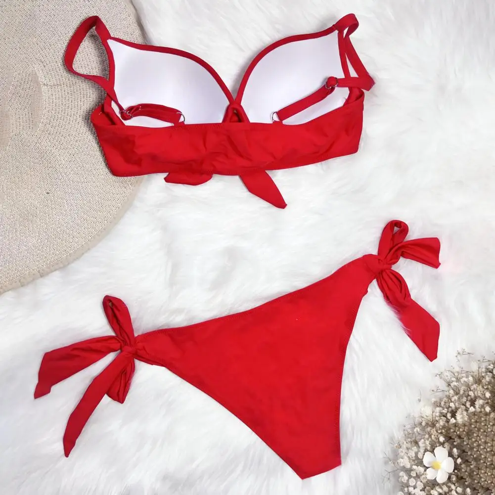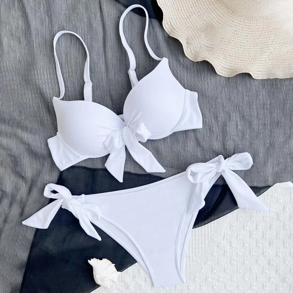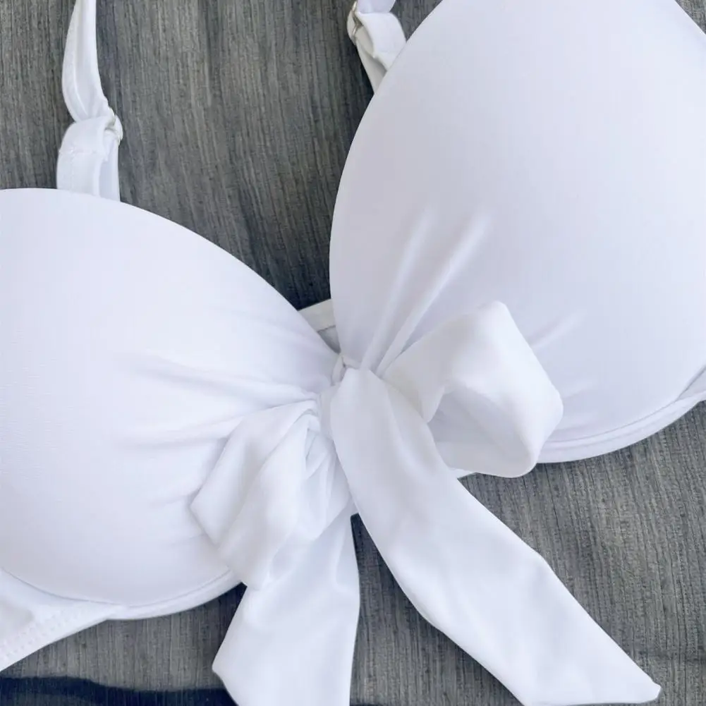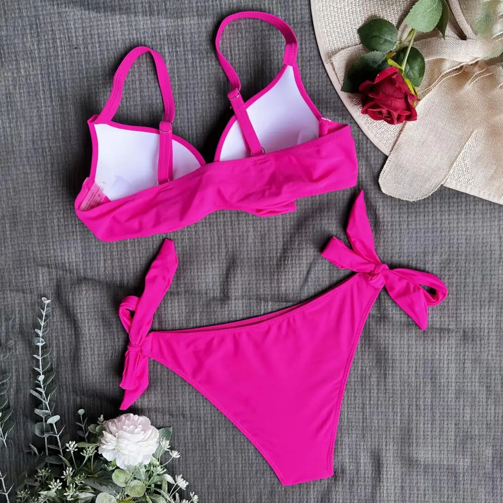 Summer Bikini Set Strappy Beachwear Women's Bikini Set Padded Sling High Waist Swim Solid Color Lace-up Summer Swimwear