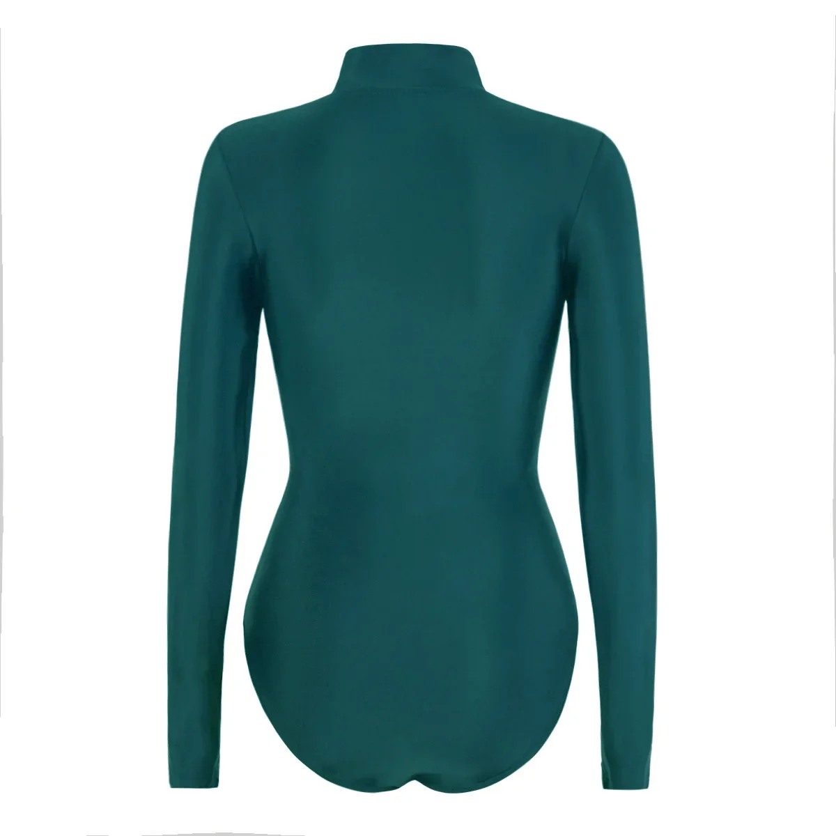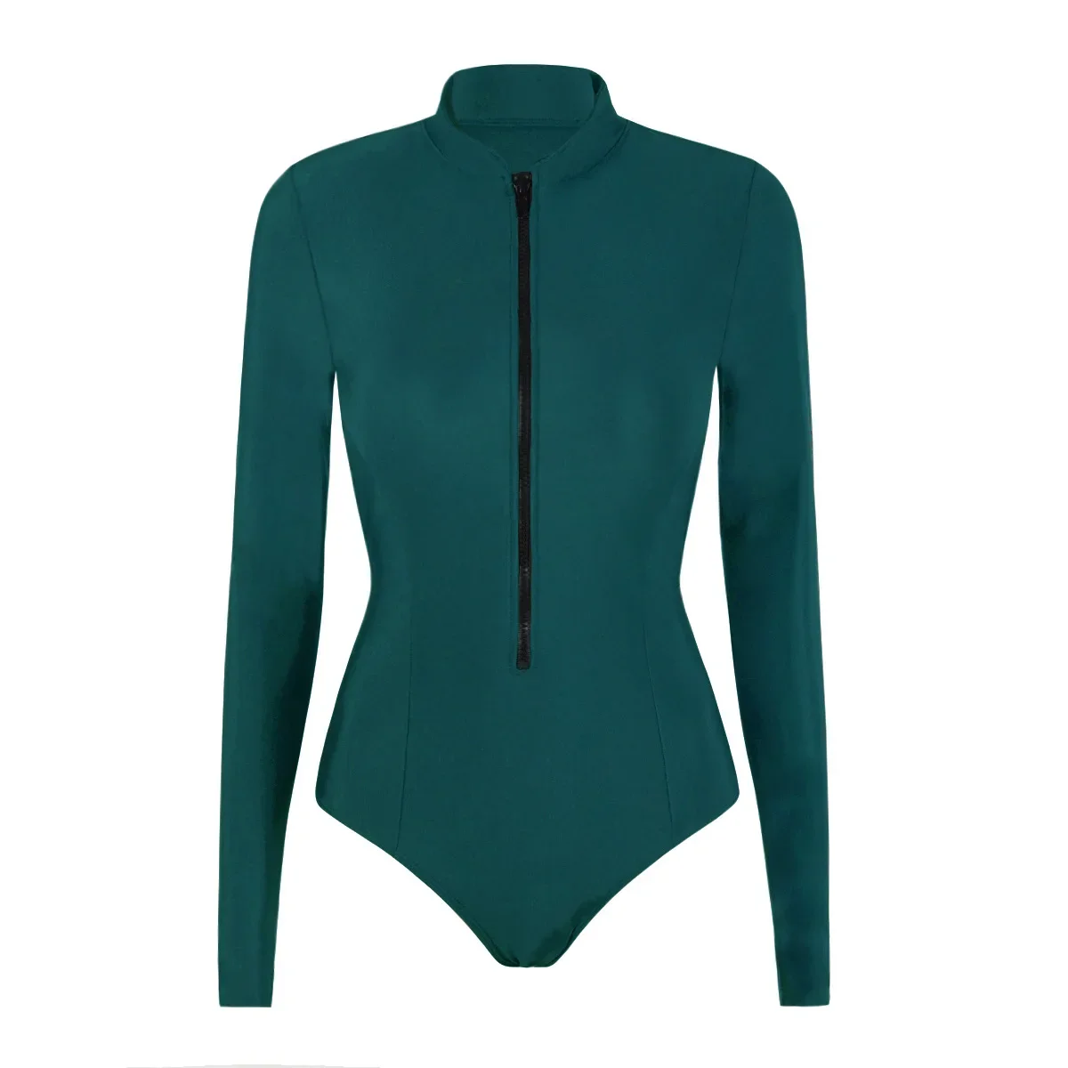 Sun Protection One-Piece Swimwear Long Sleeve Bikini Conservative Beach Swimming Triangular Design Zipper Closure Swimsuit