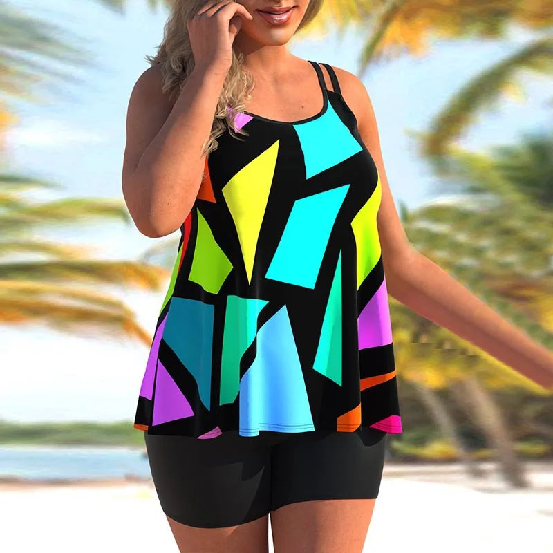 This plus size tankini swimwear set offers a comfortable and flattering fit for women seeking stylish beachwear. Crafted as a two-piece bikini with monokini elements, it's designed to provide support and coverage while enhancing your natural shape. Available in sizes S to 5XL, this versatile swimsuit suits a wide range of body types, ensuring confidence and ease during swimming or sunbathing. Ideal for beach days or poolside relaxation, it blends functionality with modern swimwear fashion.