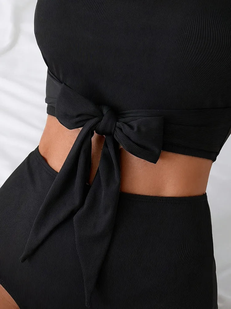 This two-piece tankini swimsuit offers versatile style and comfort for beach or poolside wear. Designed to provide more coverage than a traditional bikini, it features a tank top paired with matching bottoms, combining the ease of a one-piece with the convenience of separates. Crafted for both swimming and sunbathing, it balances functionality with fashion, making it a practical choice for active swimmers and casual wear alike. Durable and flattering, this monokini-inspired set supports confident movement while maintaining a sleek silhouette.
