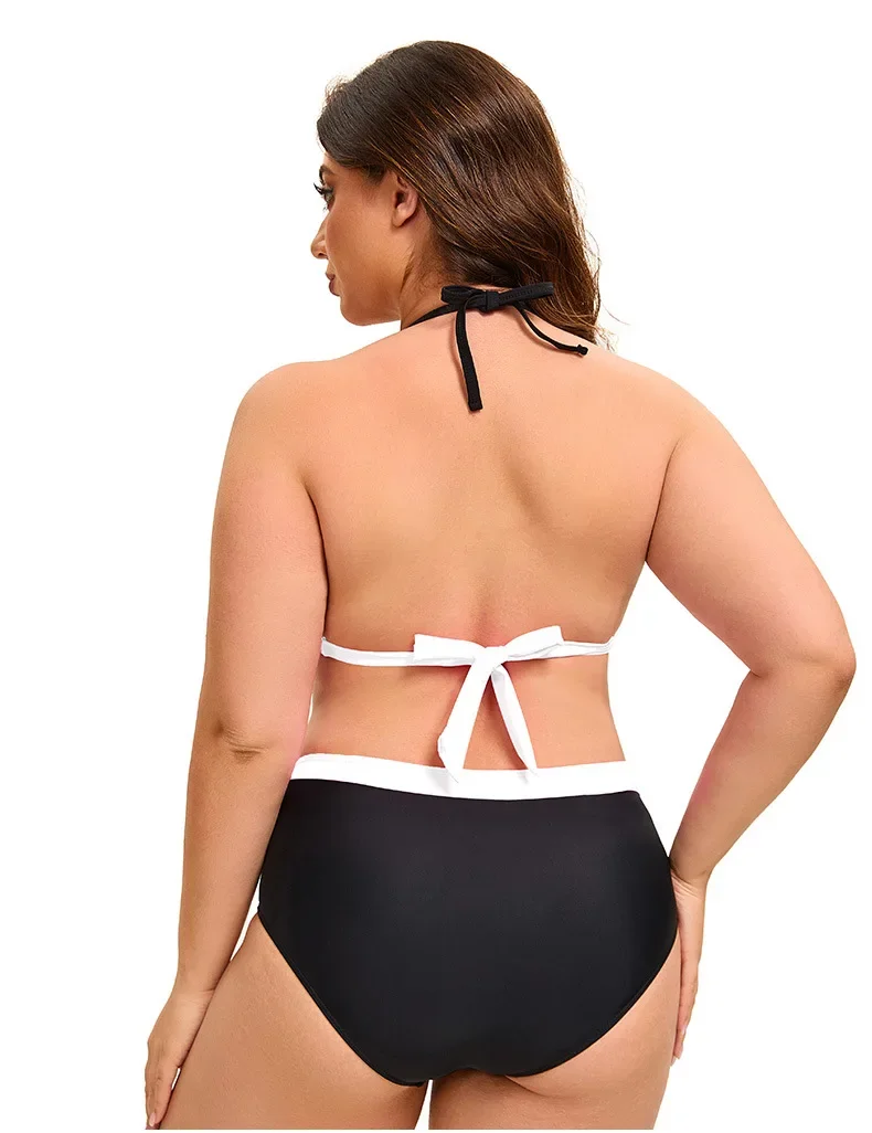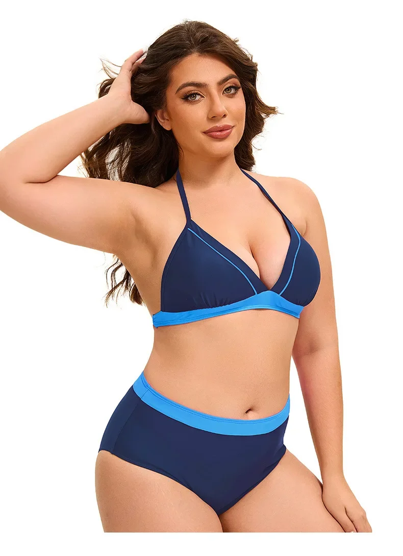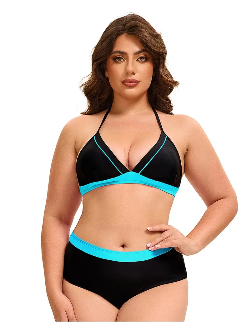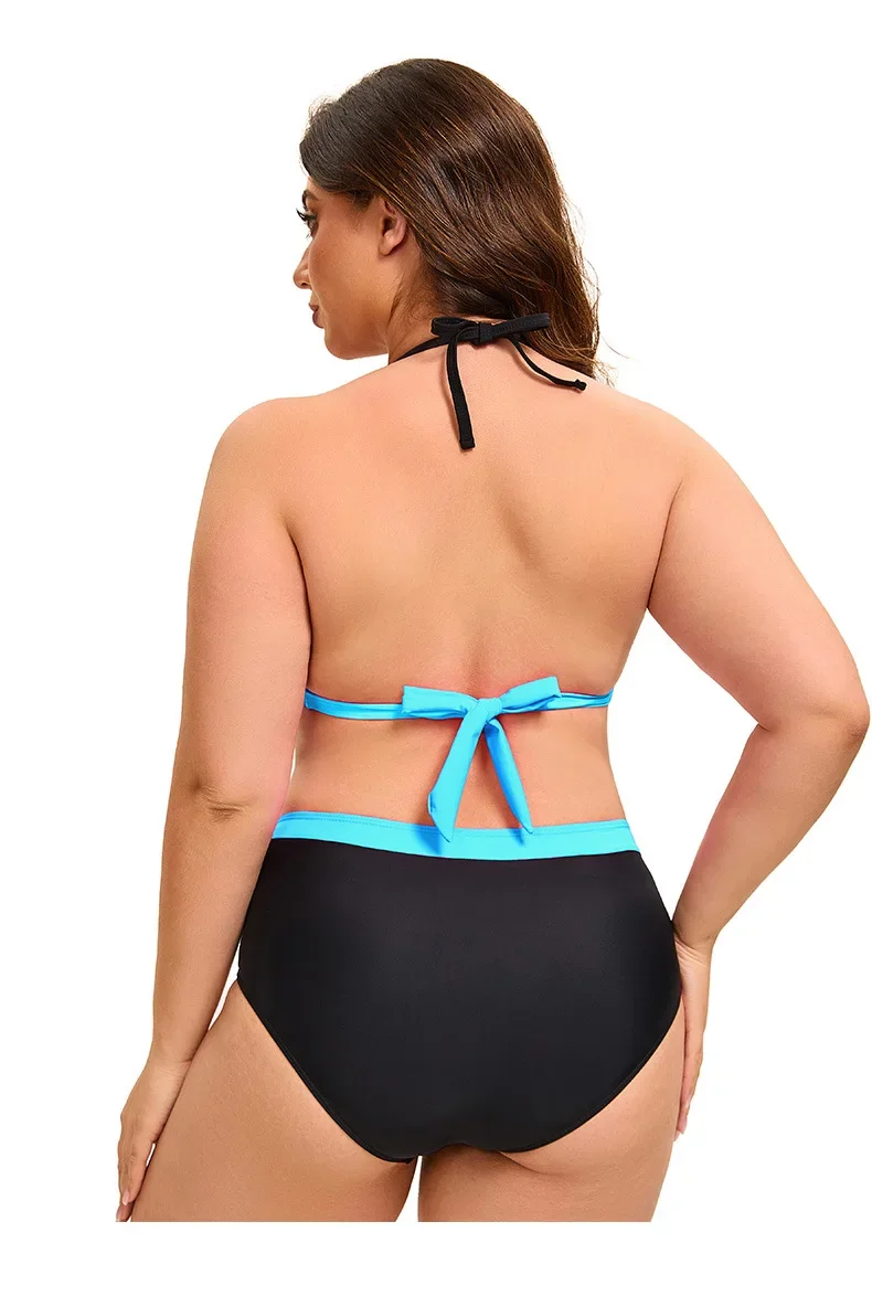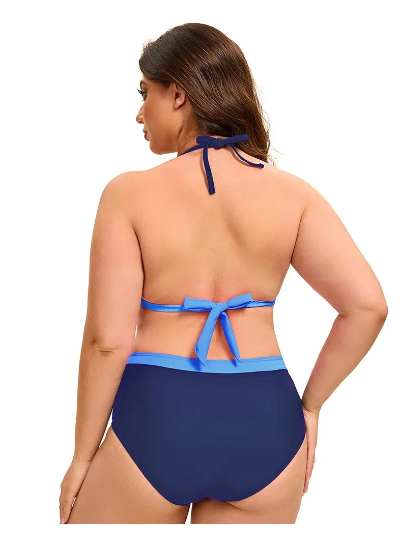 Plus Size Bikini Swimsuit Low Waist Bikini Set Backless Women's Swimsuit Block Color Two-Pieces Swimwear Summer Beach Bathing Suit
