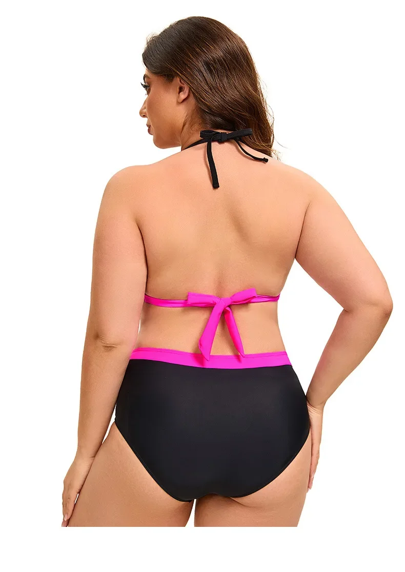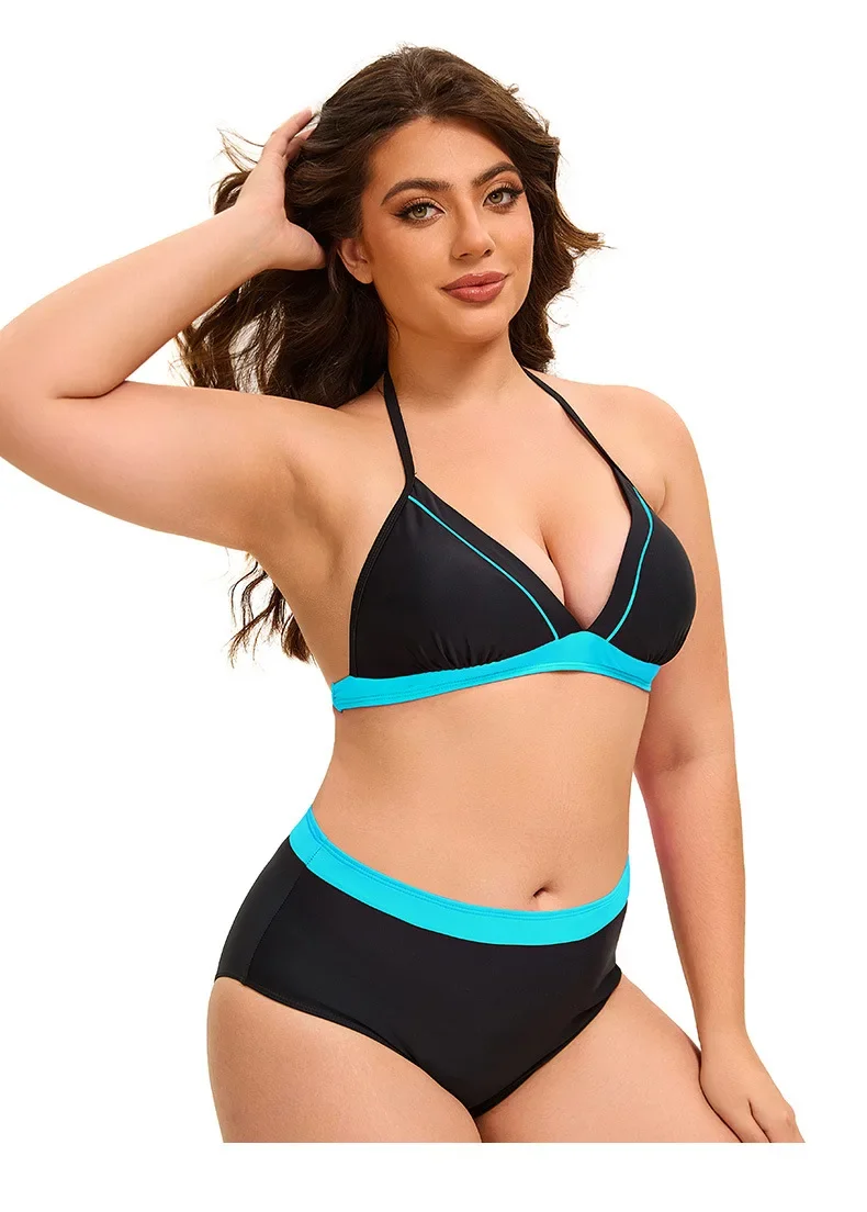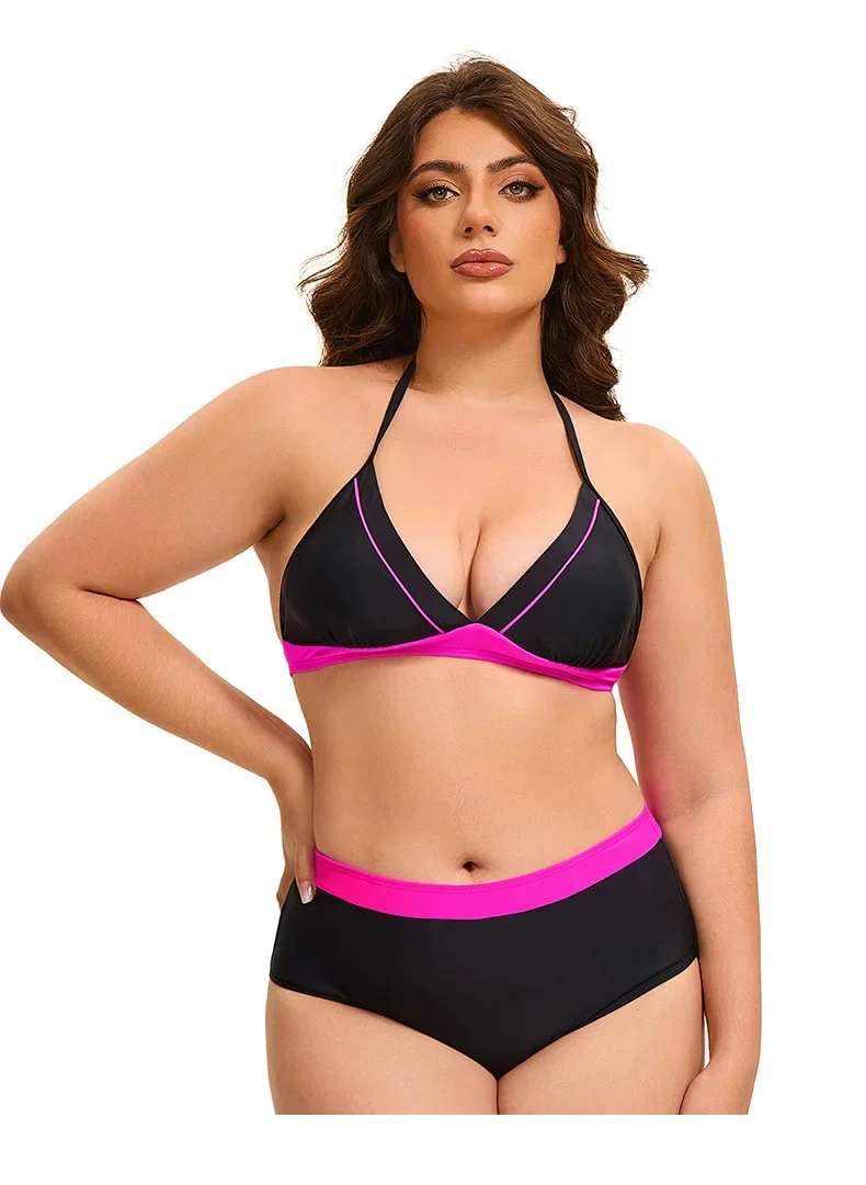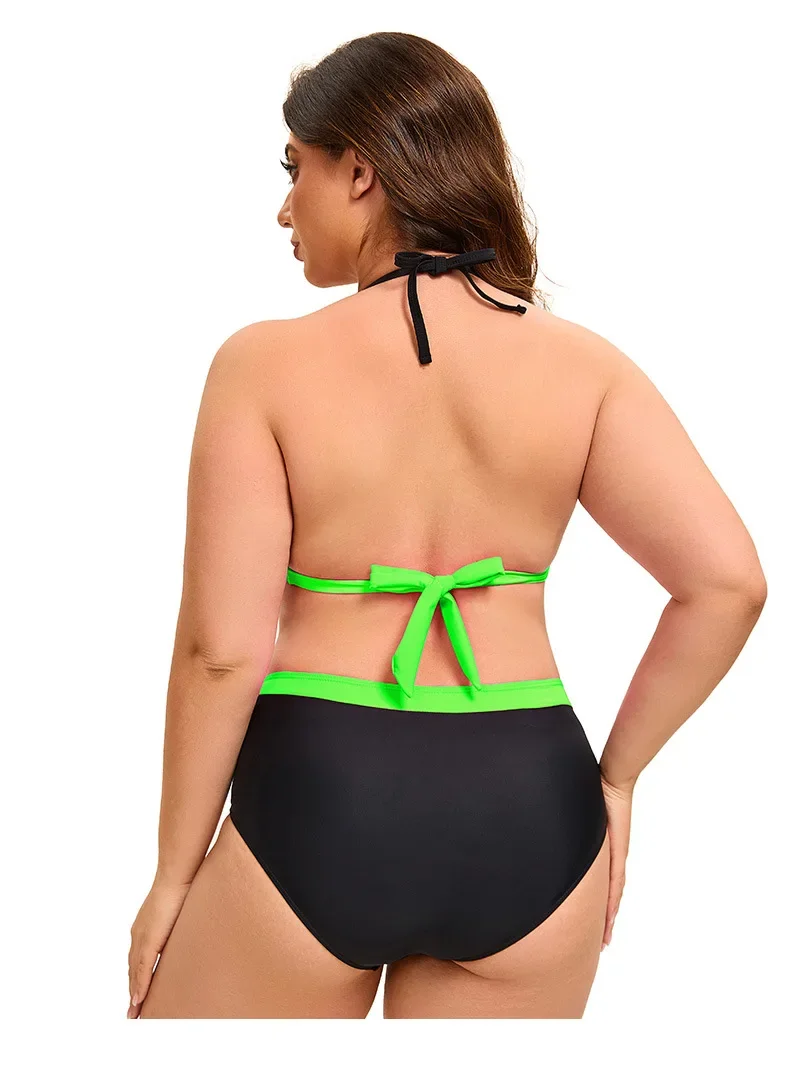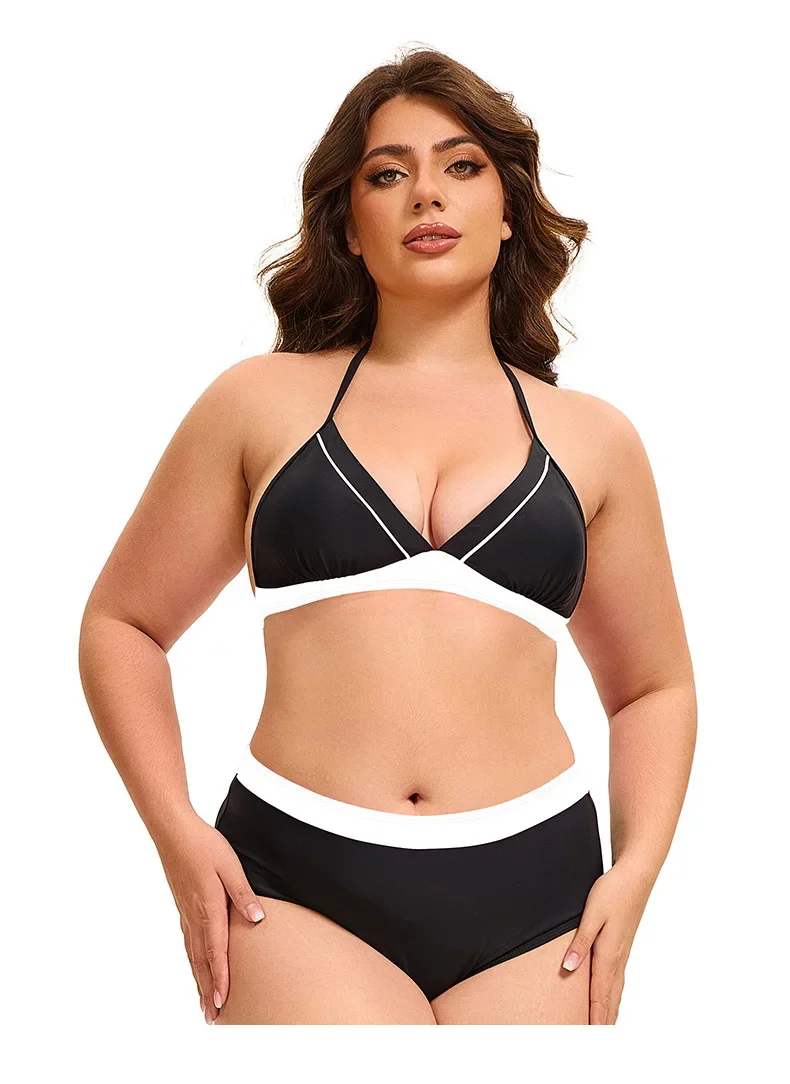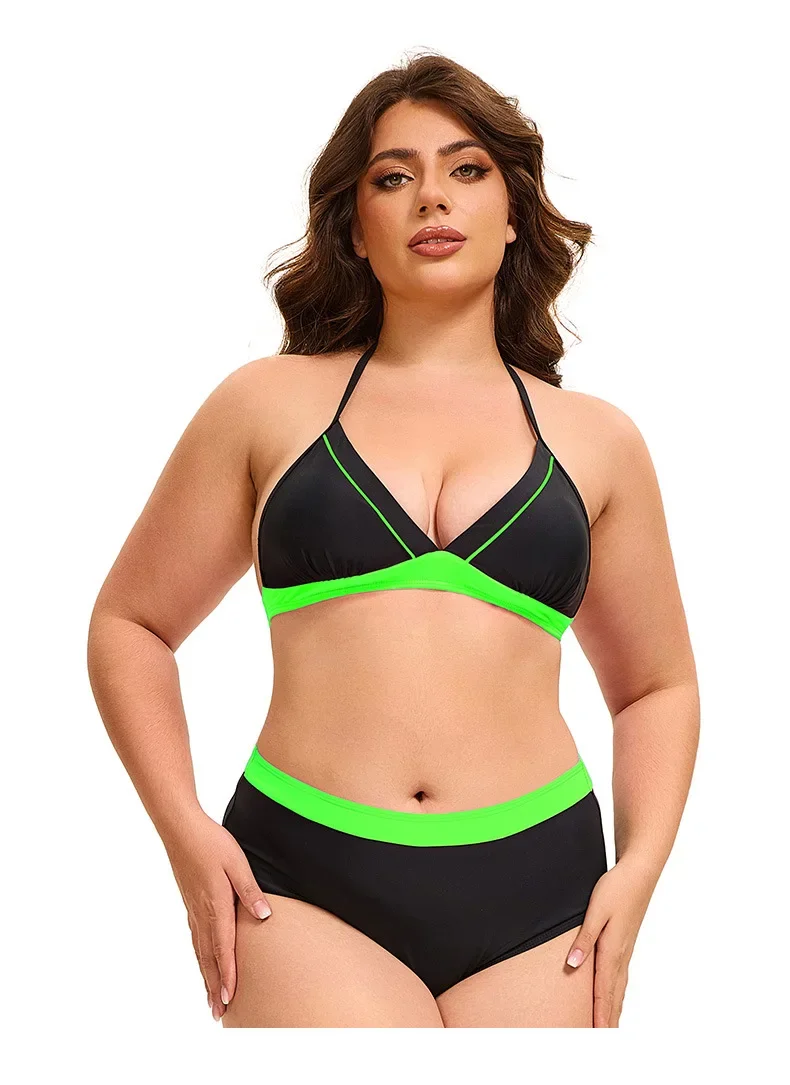 Plus Size Bikini Swimsuit Low Waist Bikini Set Backless Women's Swimsuit Block Color Two-Pieces Swimwear Summer Beach Bathing Suit