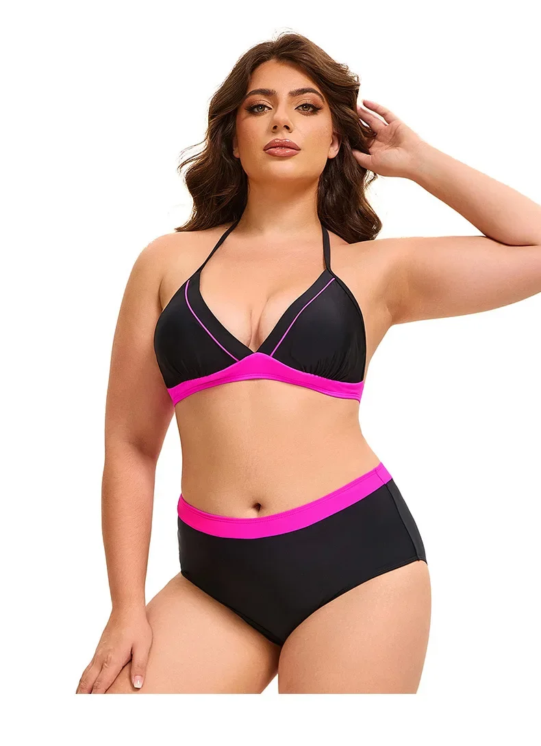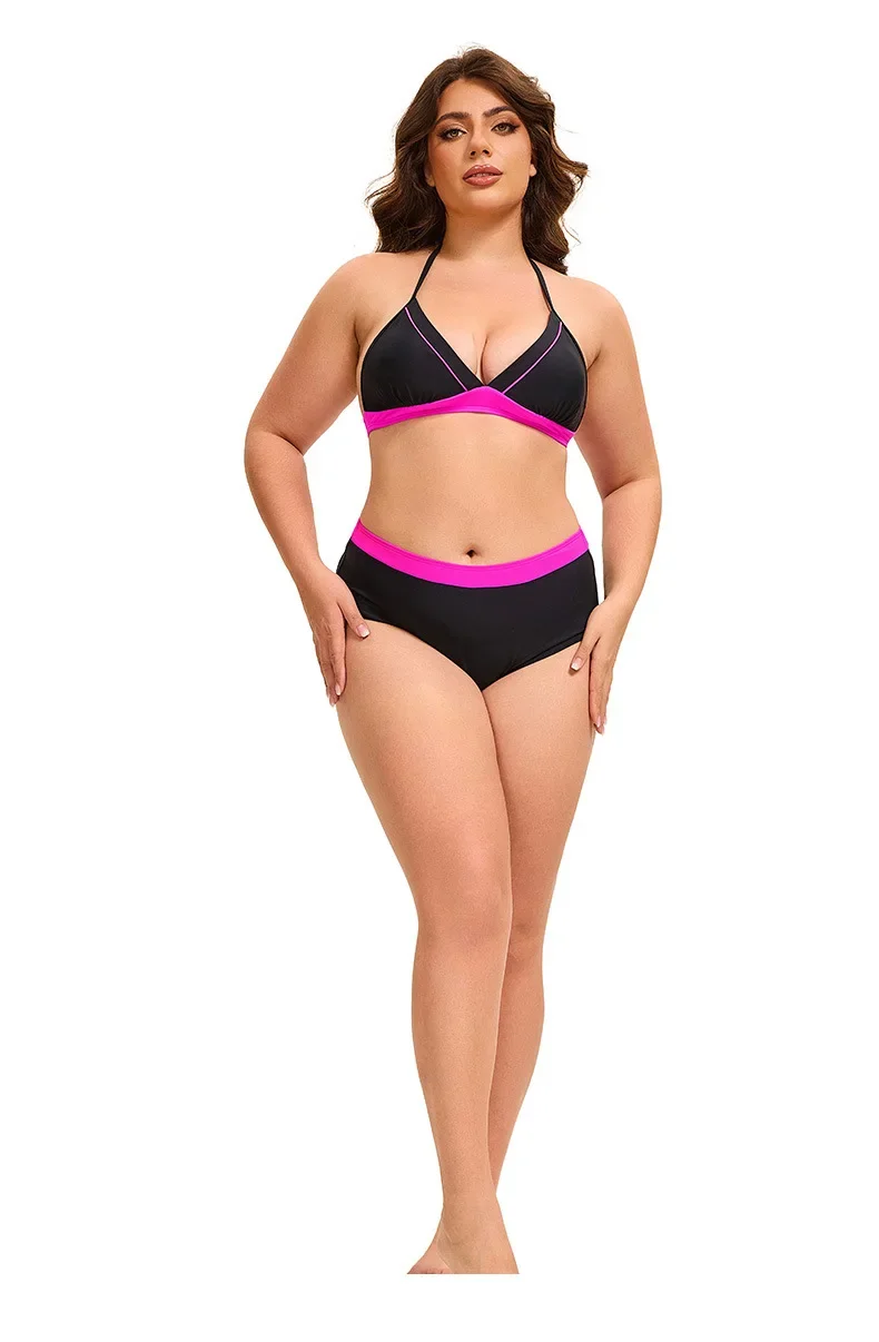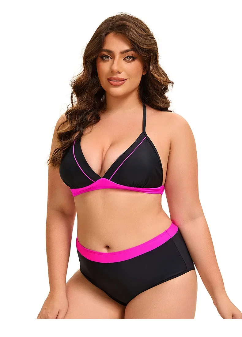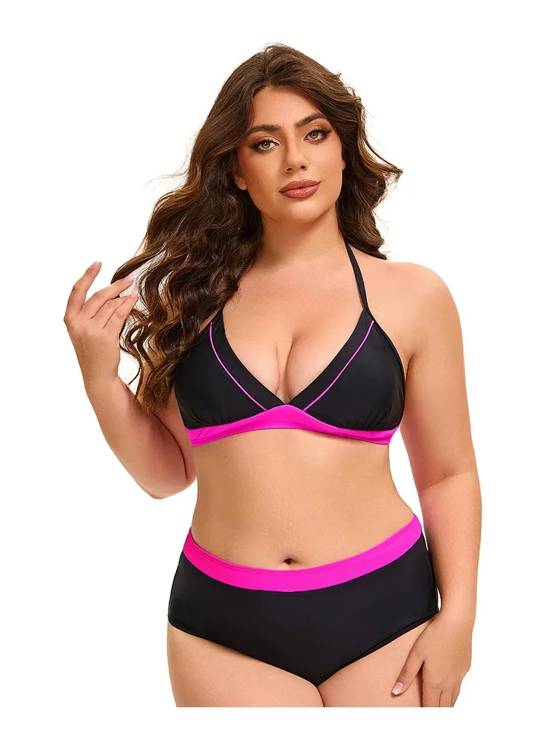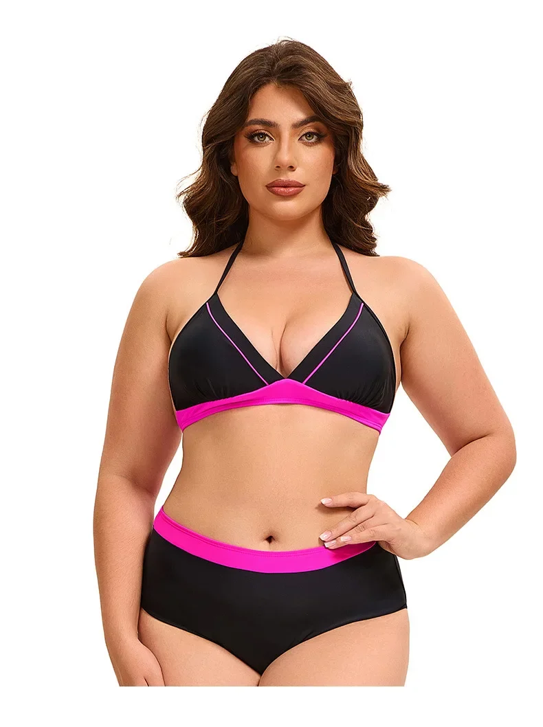 Plus Size Bikini Swimsuit Low Waist Bikini Set Backless Women's Swimsuit Block Color Two-Pieces Swimwear Summer Beach Bathing Suit