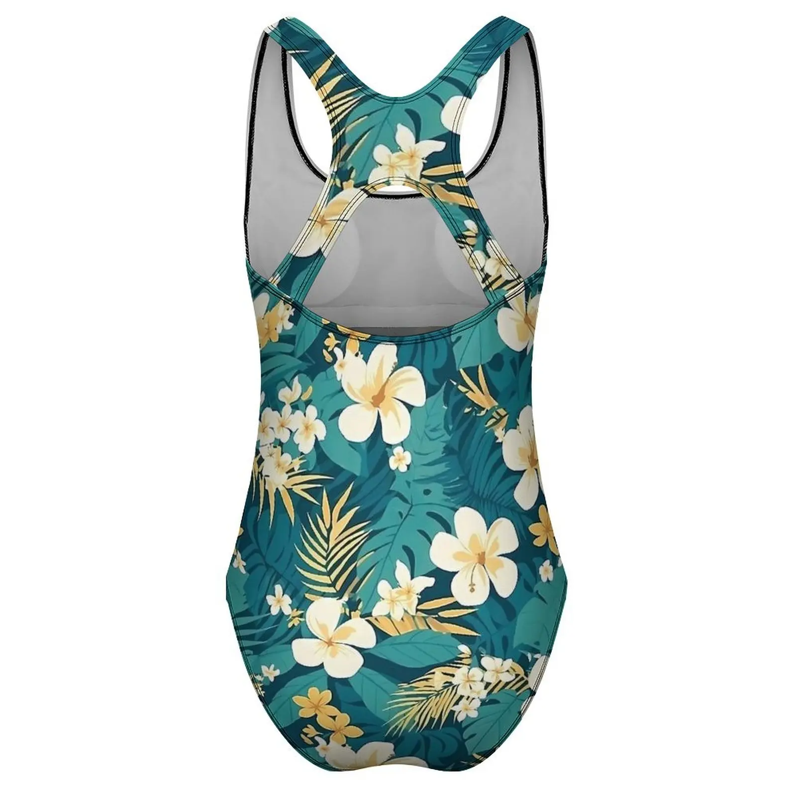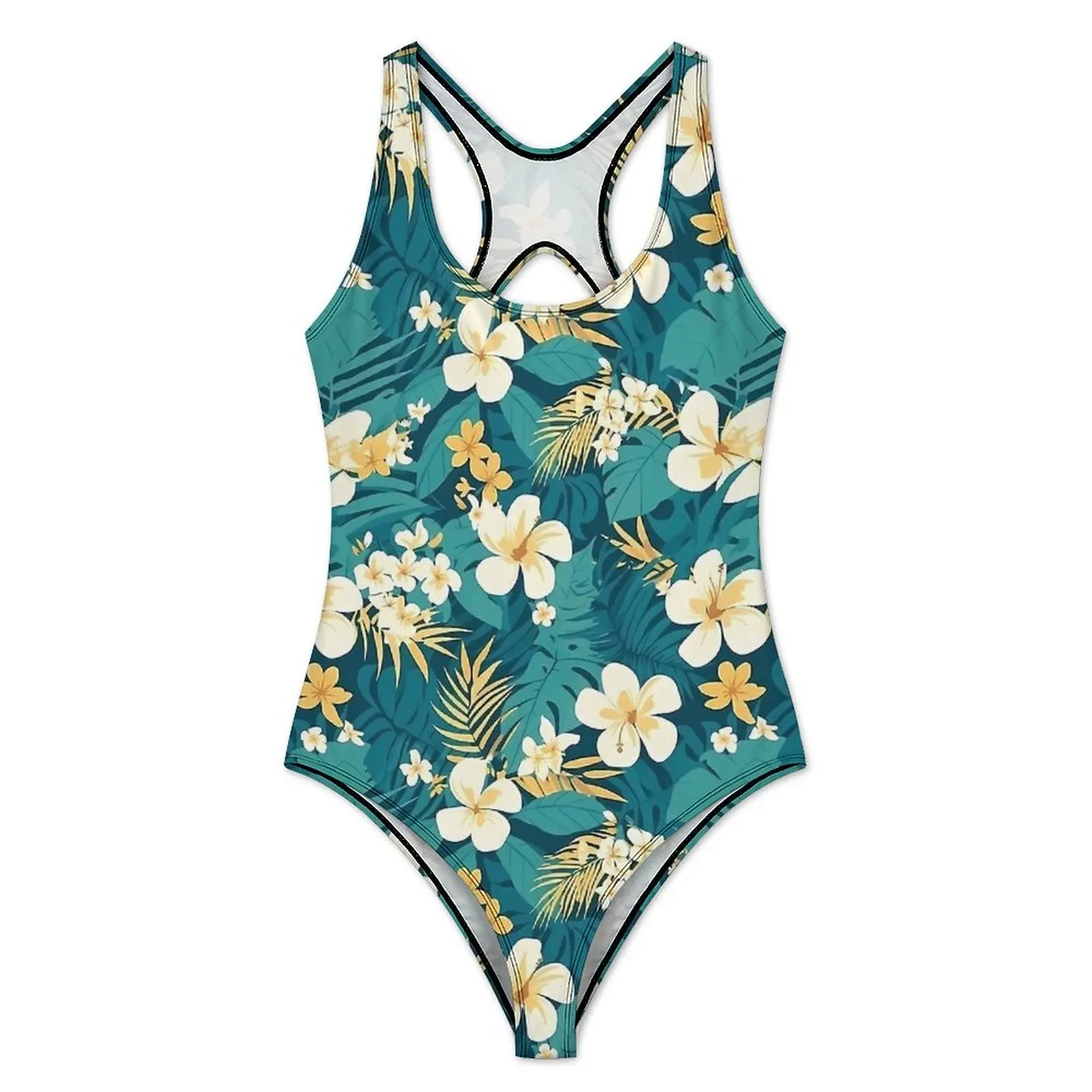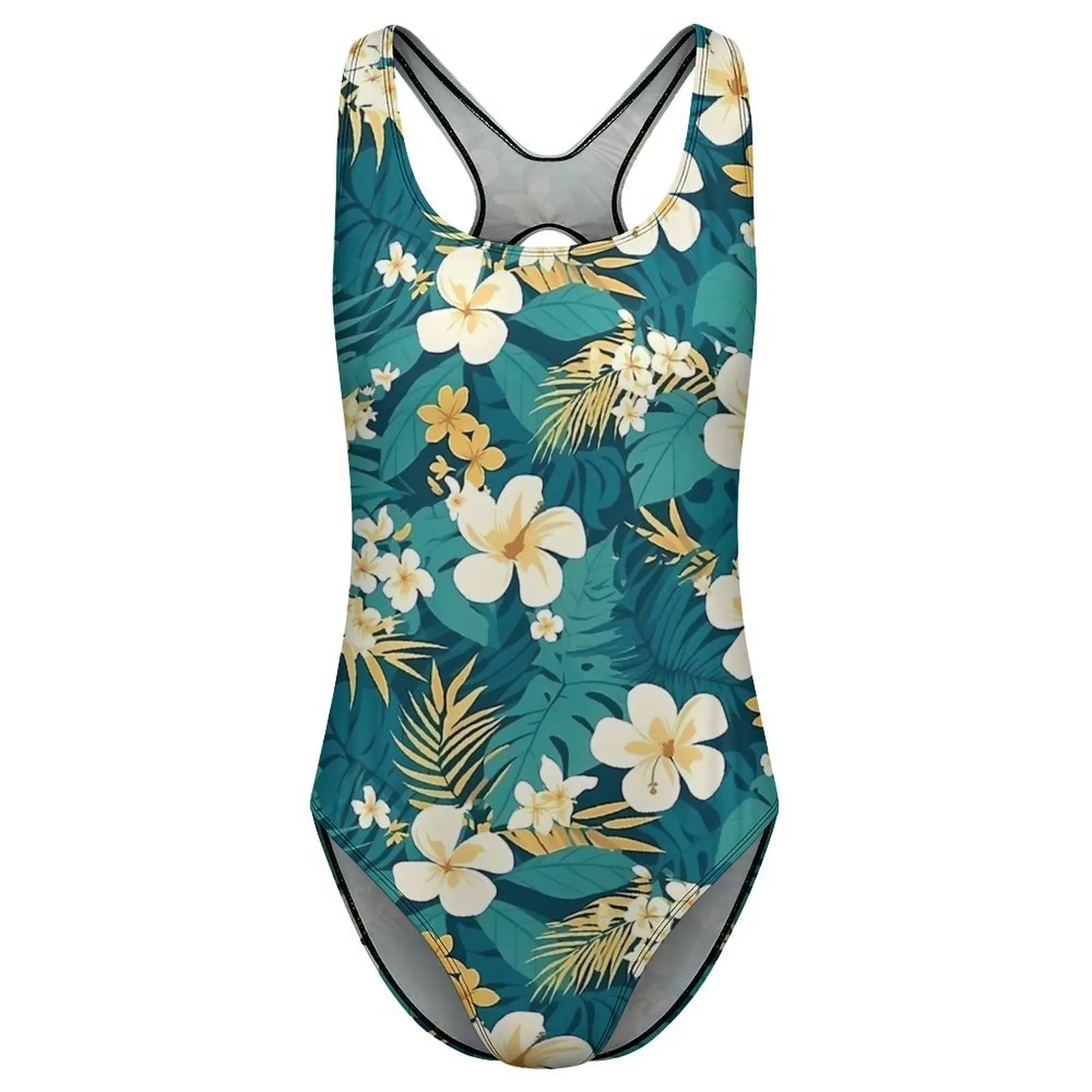 Tropical Flower Swimsuit Green Hawaiian Motif Women Swimwear One Piece Simple Bodysuit Vacation Bath Push Up Bathing Suits