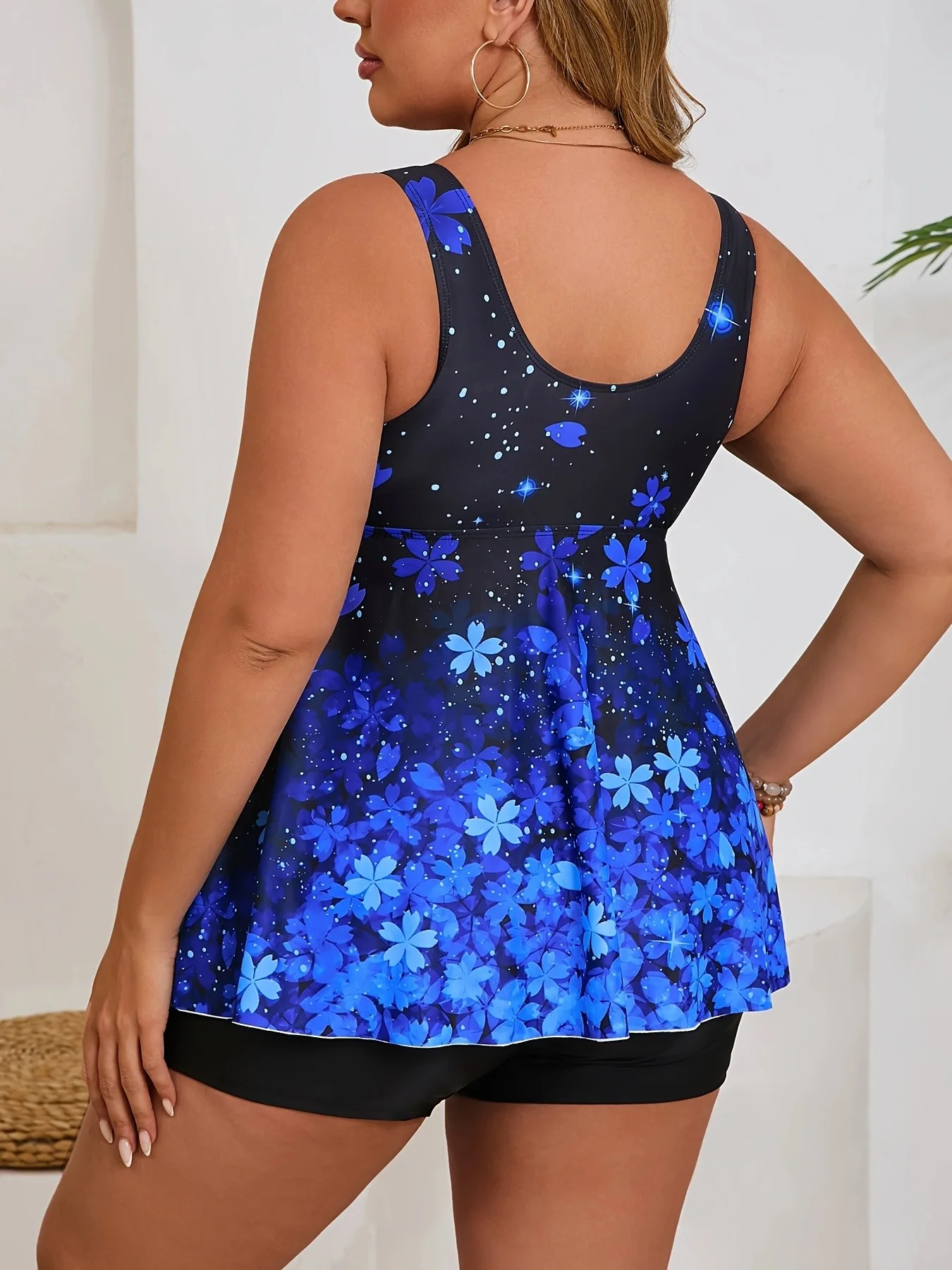 Designed for comfort and confidence, this two-piece tankini combines a printed swim top with coordinating shorts for versatile beach wear. The tankini silhouette offers extended coverage while maintaining a flattering fit, making it an ideal choice for plus-size swimmers seeking style without compromise. The quick-drying fabric and secure construction ensure durability through regular pool and ocean use. Perfect for lap swimming, casual beach outings, or leisurely water activities, this swimsuit delivers both functionality and contemporary design in one complete package.