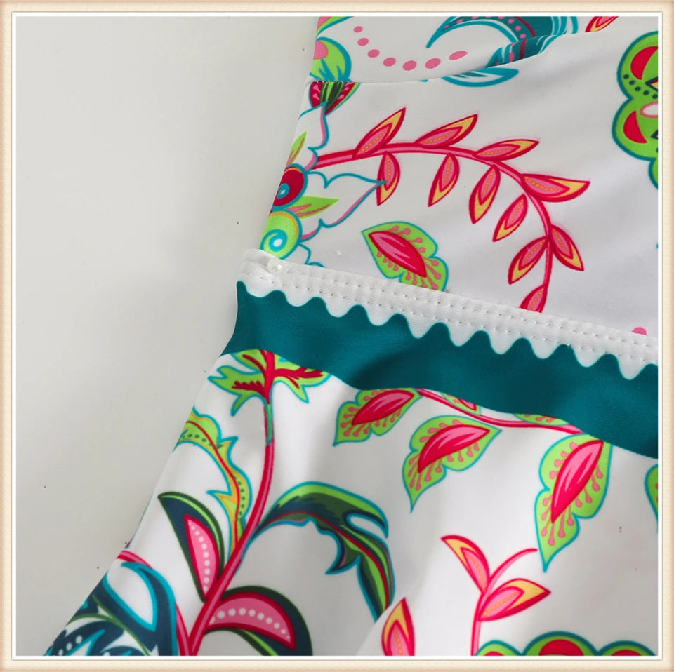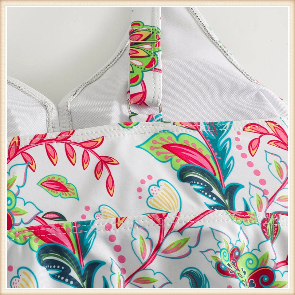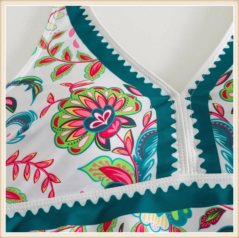 Two Piece Swimsuit Women V-Neck Print Tankini Set Female High Waist Swimwear Beachwear Bathers Bathing Swimming Suit Summer