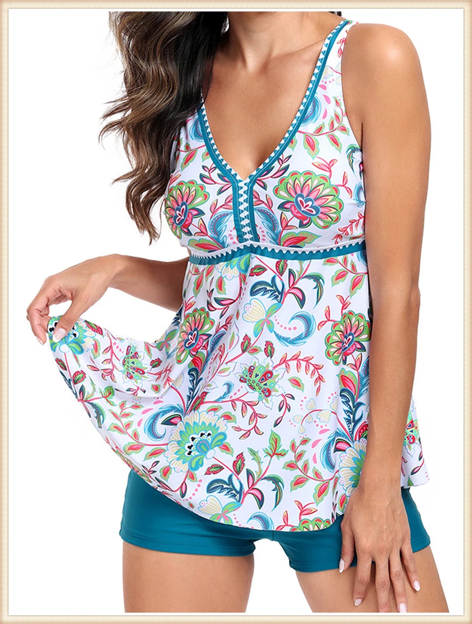 Model Number: Two Piece Swimsuit 2024 Women V-Neck Print Tankini Set