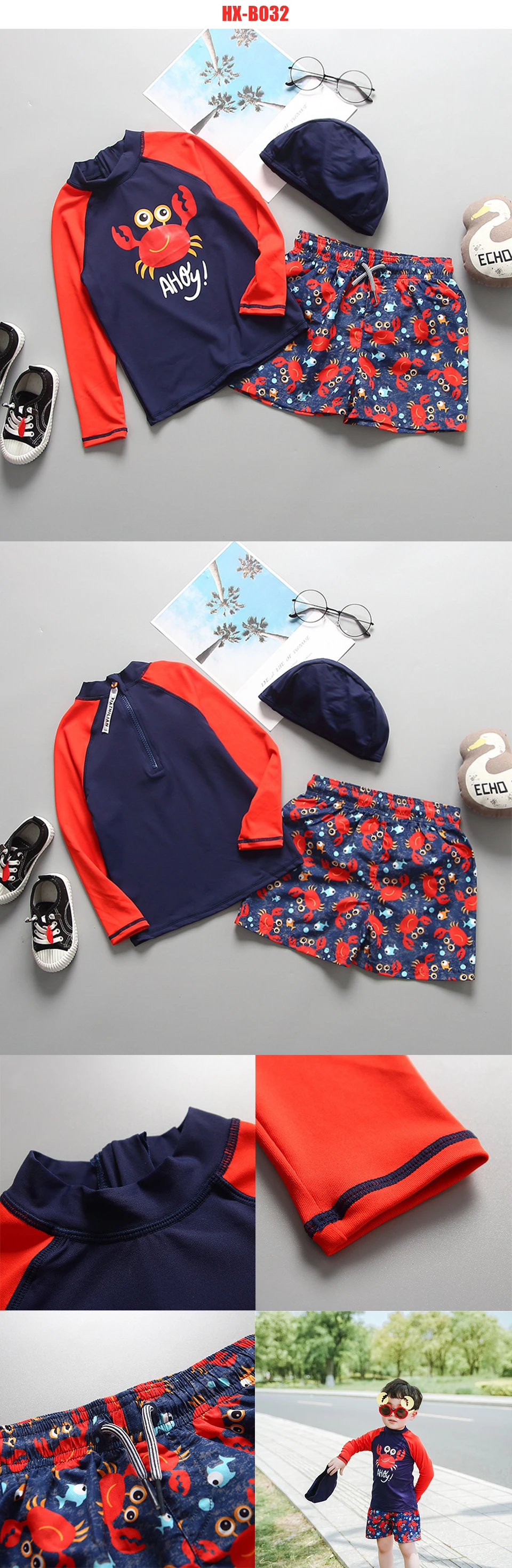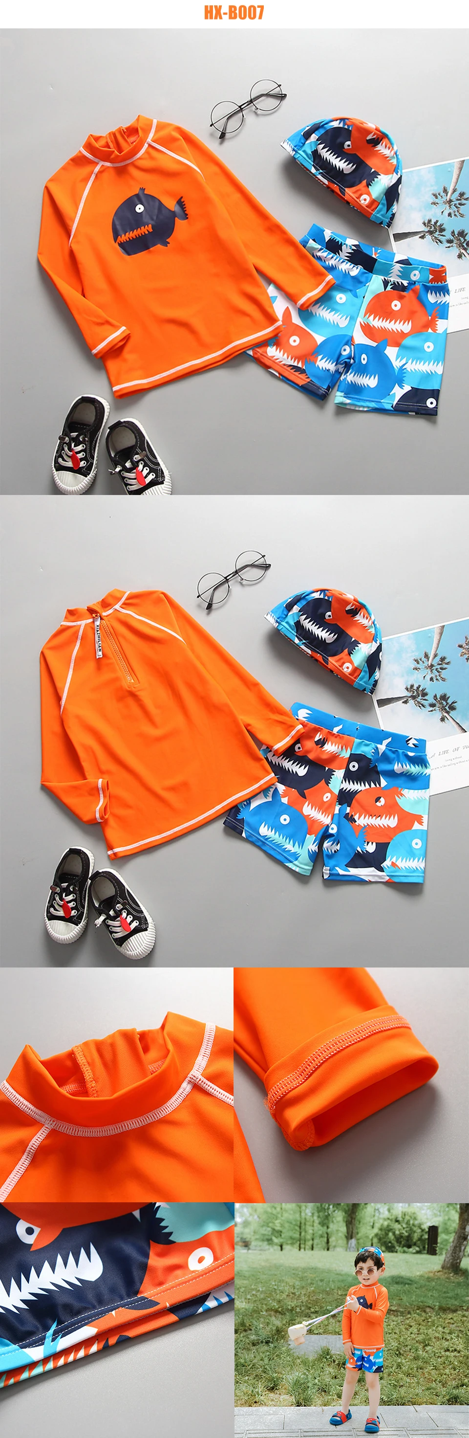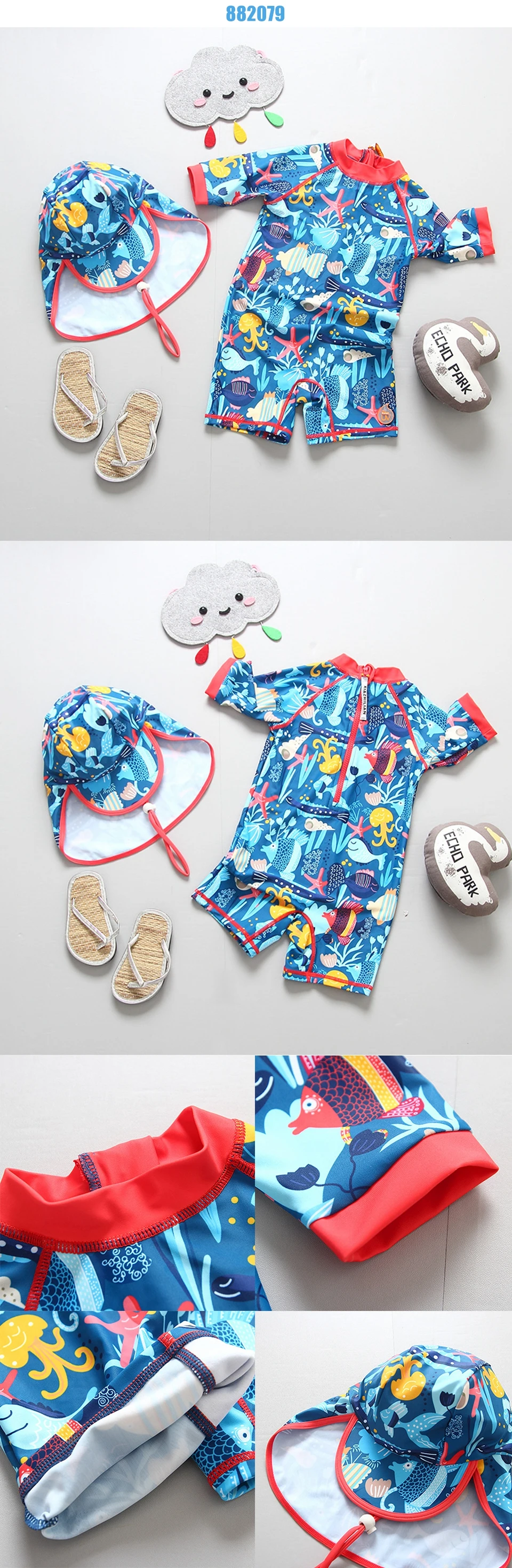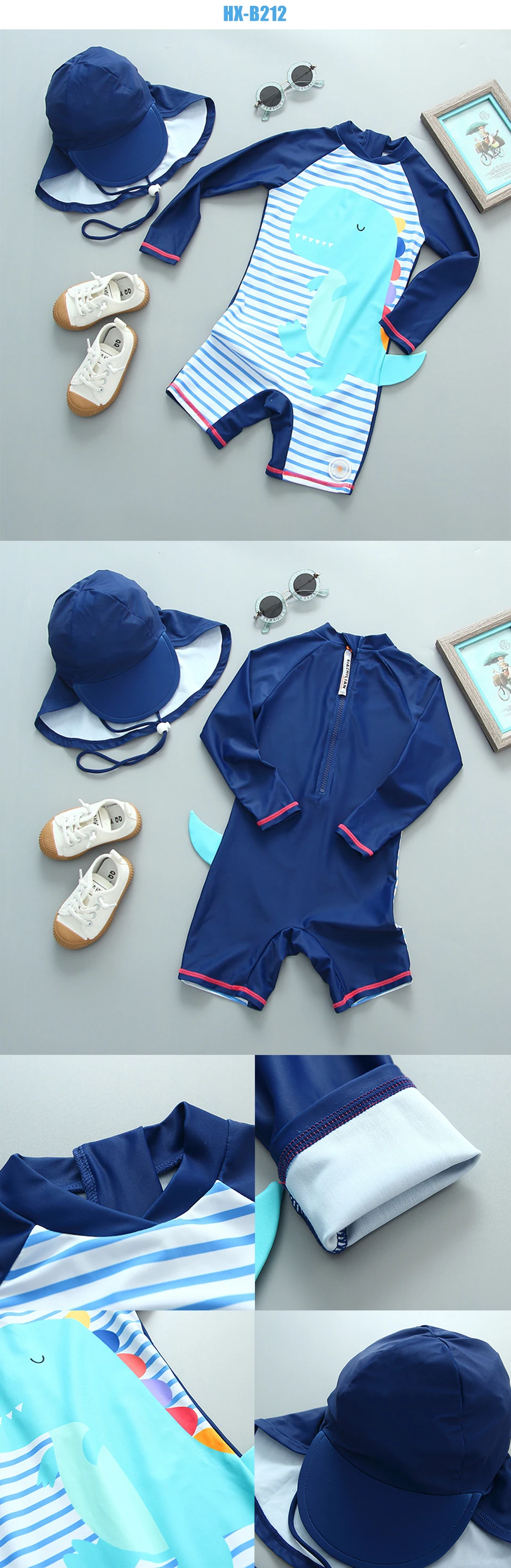 UPF50+ Swimsuit Kids Cartoon Shark Dinosaur Toddler Baby Boy Bathing Suit Long Sleeve Children's Swimwear 2-9 Years Swim Clothes