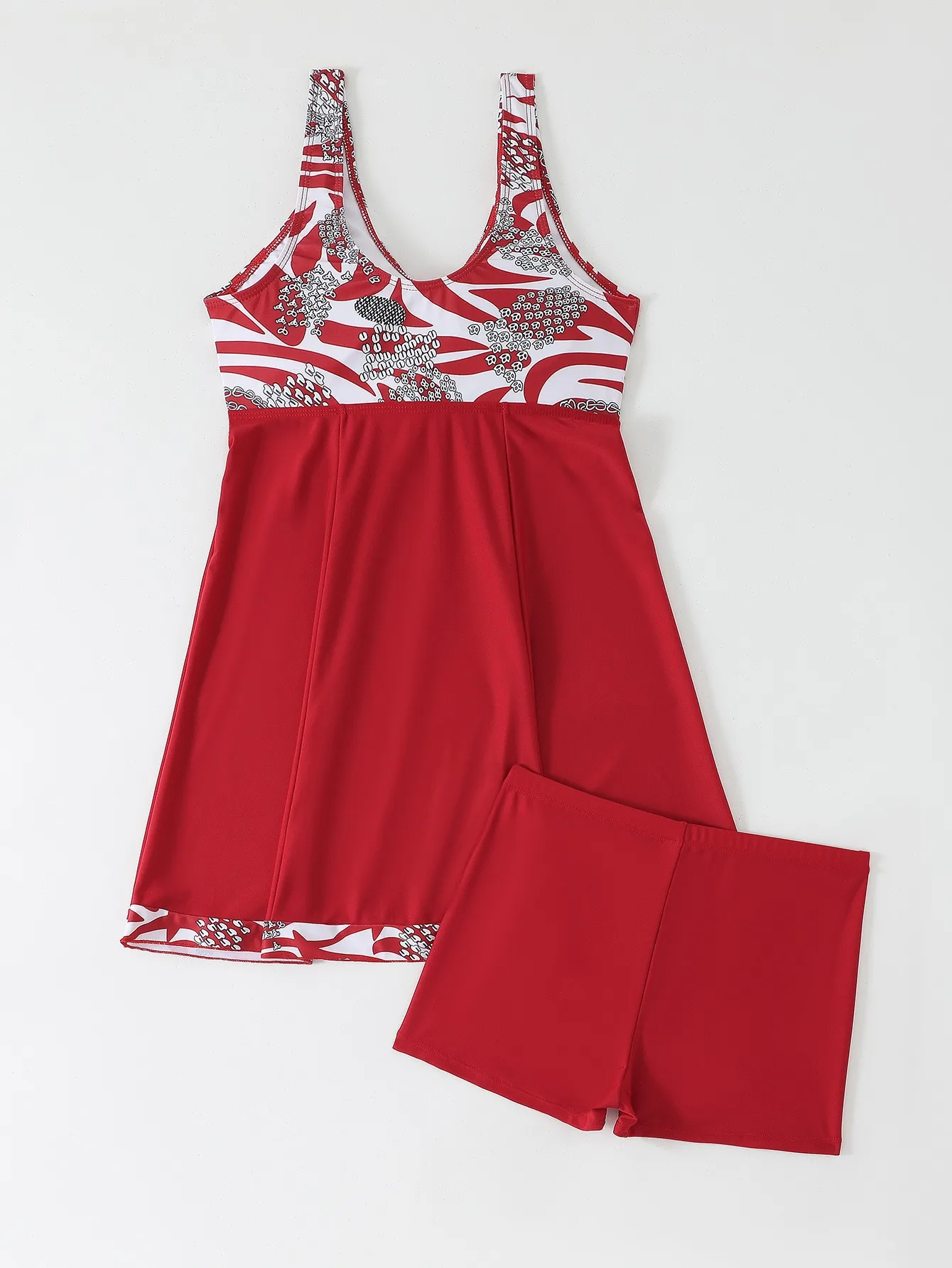 Make a confident statement with this blue patchwork tankini that combines contemporary style with functional design. The high-waist cut provides flattering coverage and support, while the push-up construction enhances your silhouette. Adjustable straps ensure a secure, customised fit for all-day comfort, whether you're swimming laps or relaxing poolside. The mixed patchwork pattern adds visual interest to your beach rotation. Crafted for women