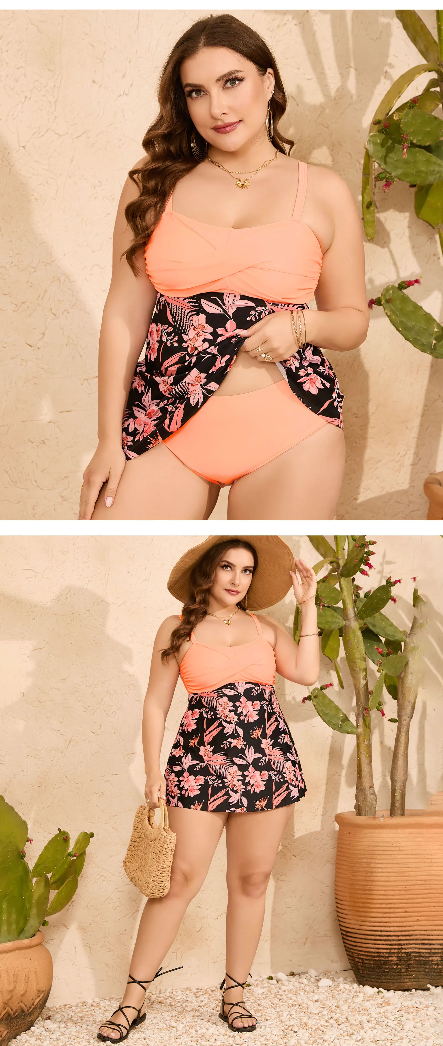 Designed for confident curves, this two-piece tankini combines style with comfort for the modern beach lover. The strapped tank top features a flattering cross-hollow design that adds visual interest while the high-waisted bottom provides excellent support and coverage. The structured fabric offers reliable shape retention throughout your swim, while the thoughtful construction ensures you can move freely whether you're swimming laps or relaxing poolside. Perfect for those seeking a sophisticated swimwear option that doesn't compromise on fit or function.