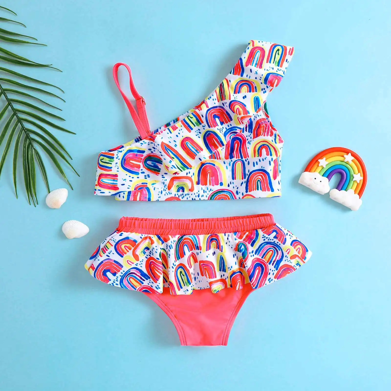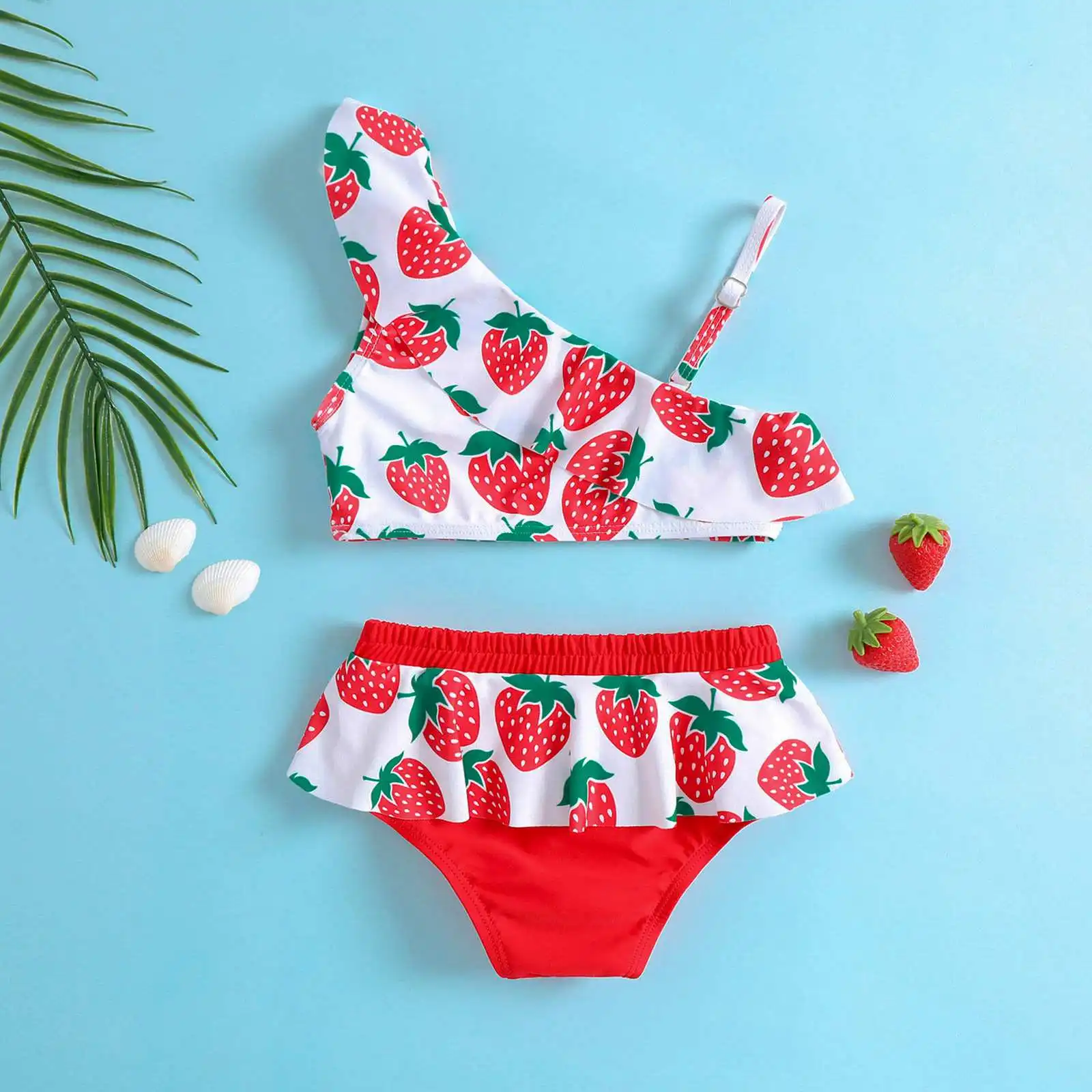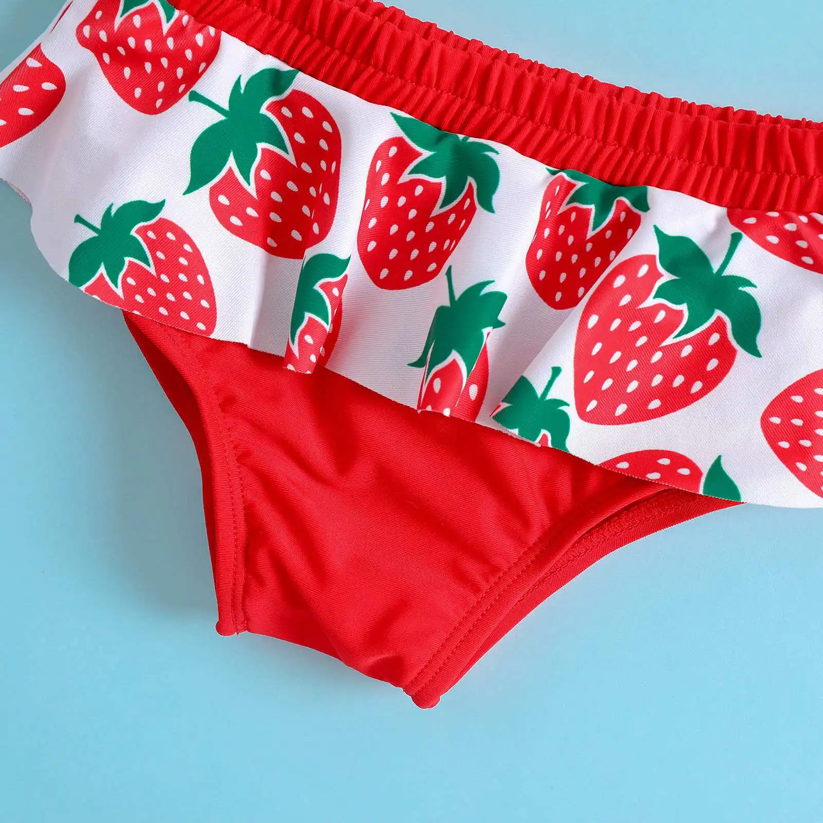 Wholesale Fashion Child Girl Strawberry Print Bikini Set Lovely Kid Swimsuit Stylish Flouncing Swimwear Hot Summer Beachwear
