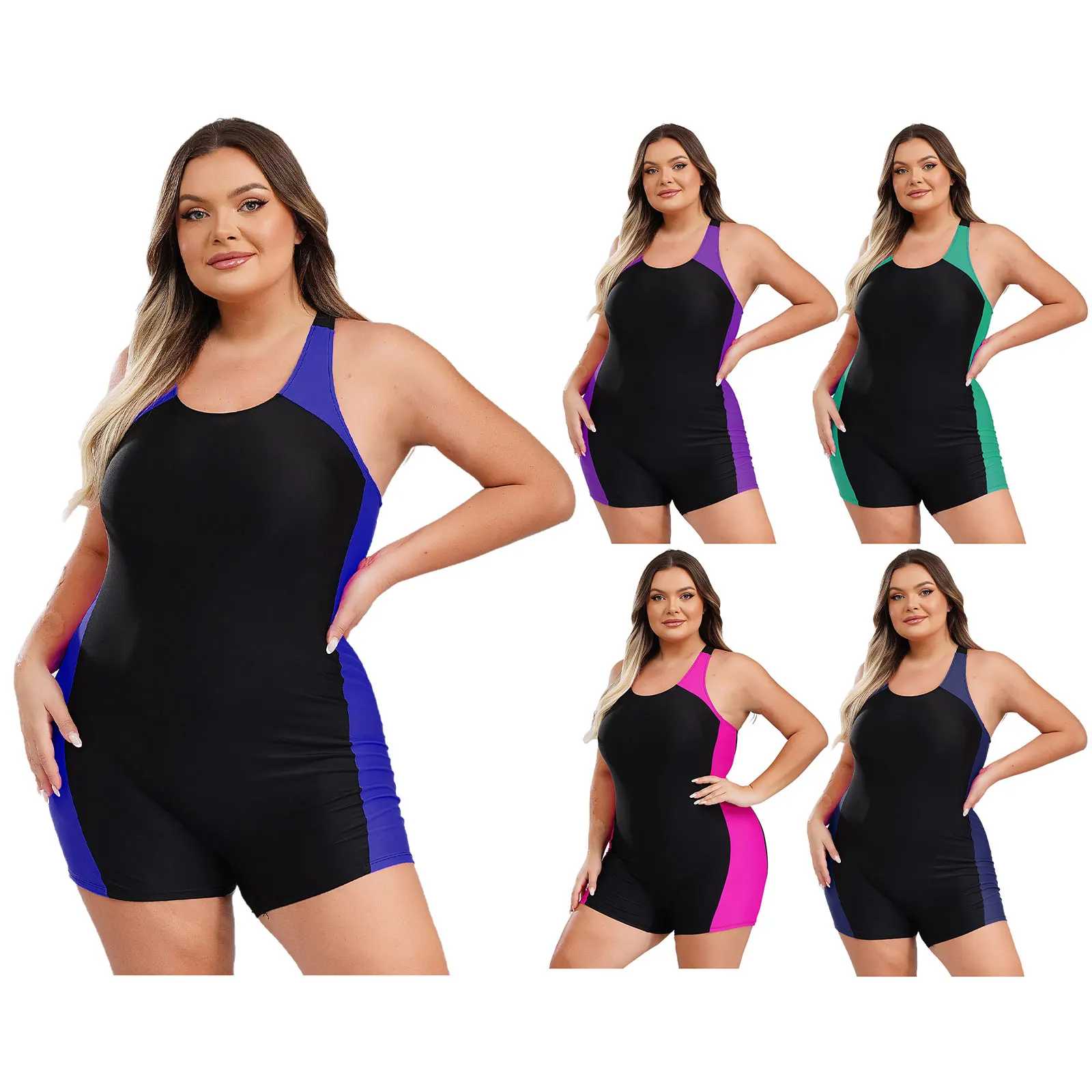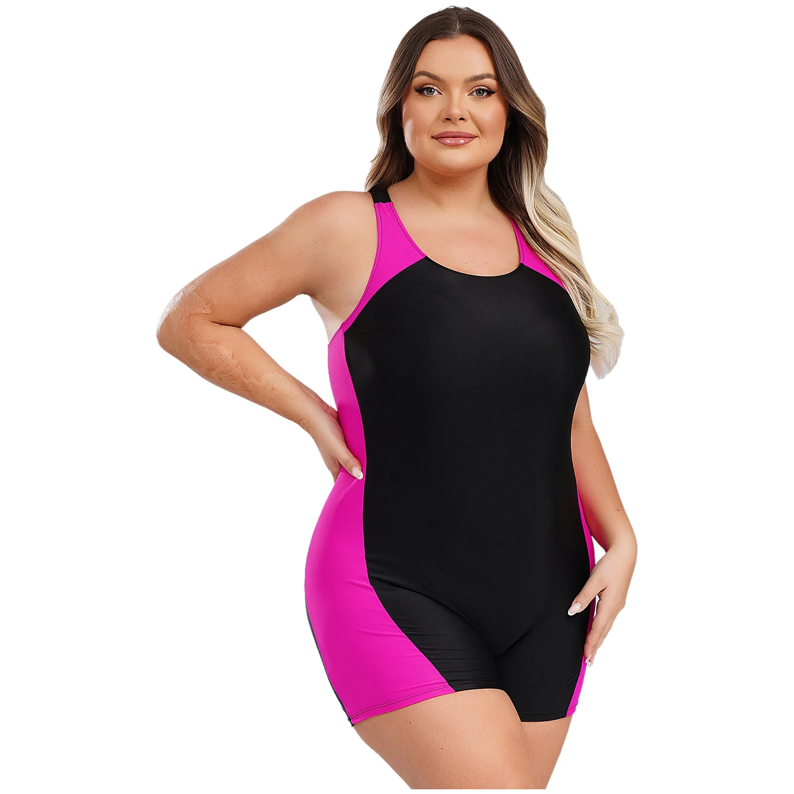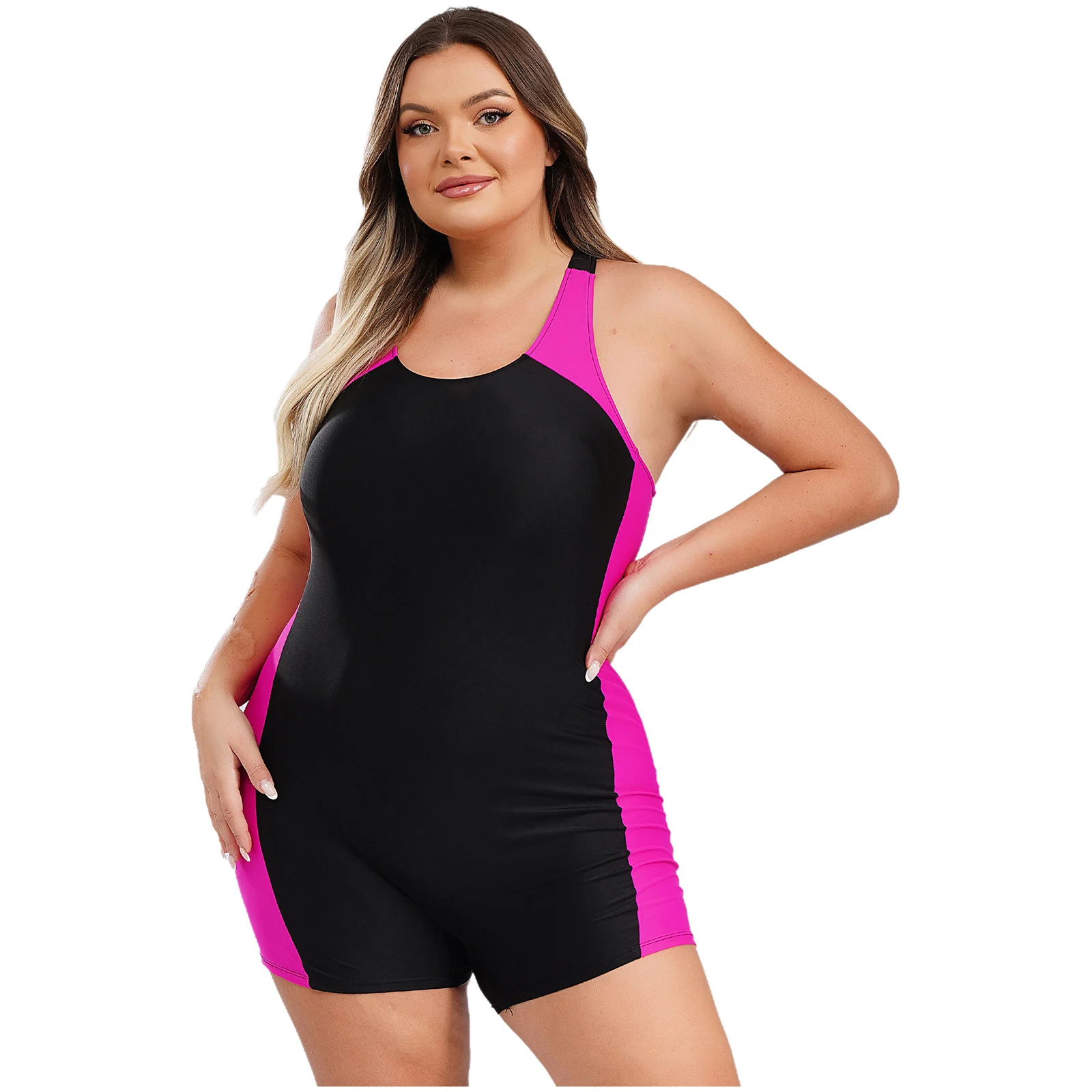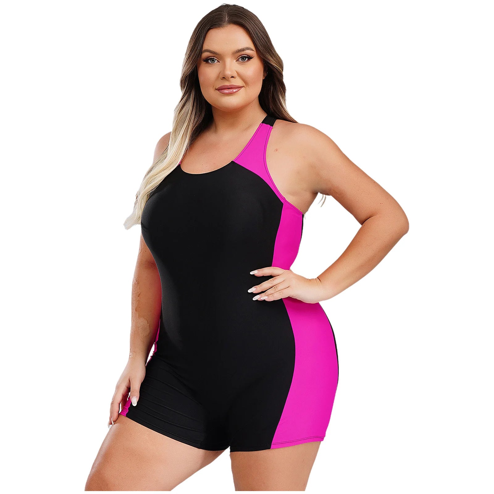 Designed for confident swimmers seeking comfort and style, this plus-size one-piece jumpsuit combines practical functionality with flattering coverage. The U-neckline offers a modern silhouette while the short-length cut provides freedom of movement for active pool sessions. Crafted to accommodate fuller figures, this versatile bathing suit delivers reliable performance whether you're training, swimming recreationally, or enjoying leisure time at the pool. The streamlined bodysuit design minimizes drag in water while maintaining a polished appearance poolside.