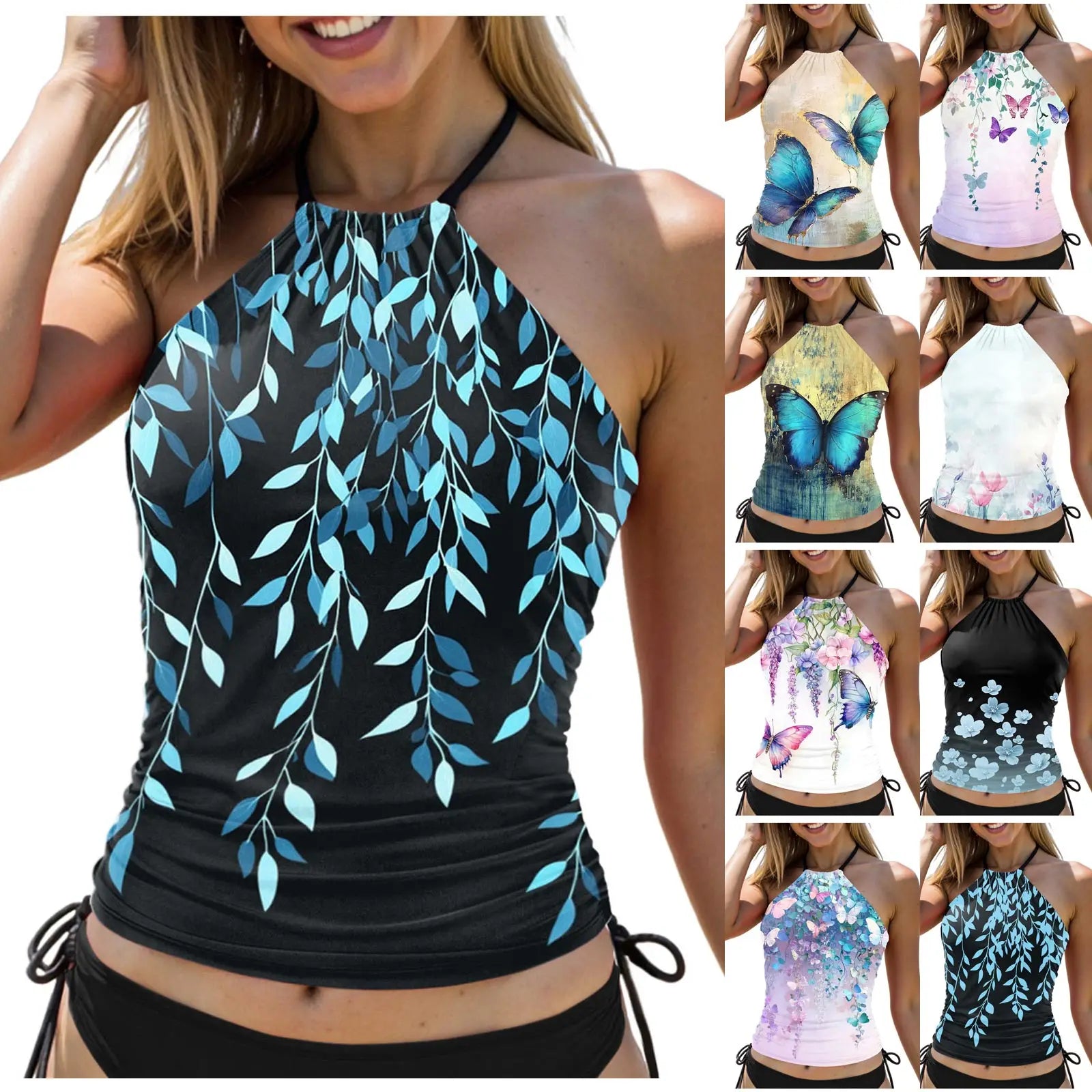and Stunning Prints:This - neck swimwear top features a wide range of and eye - catching prints, from colorful petal - like patterns to mesmerizing cosmic and oceanic designs. There's a print to suit every taste and make you stand out at the beach or pool.