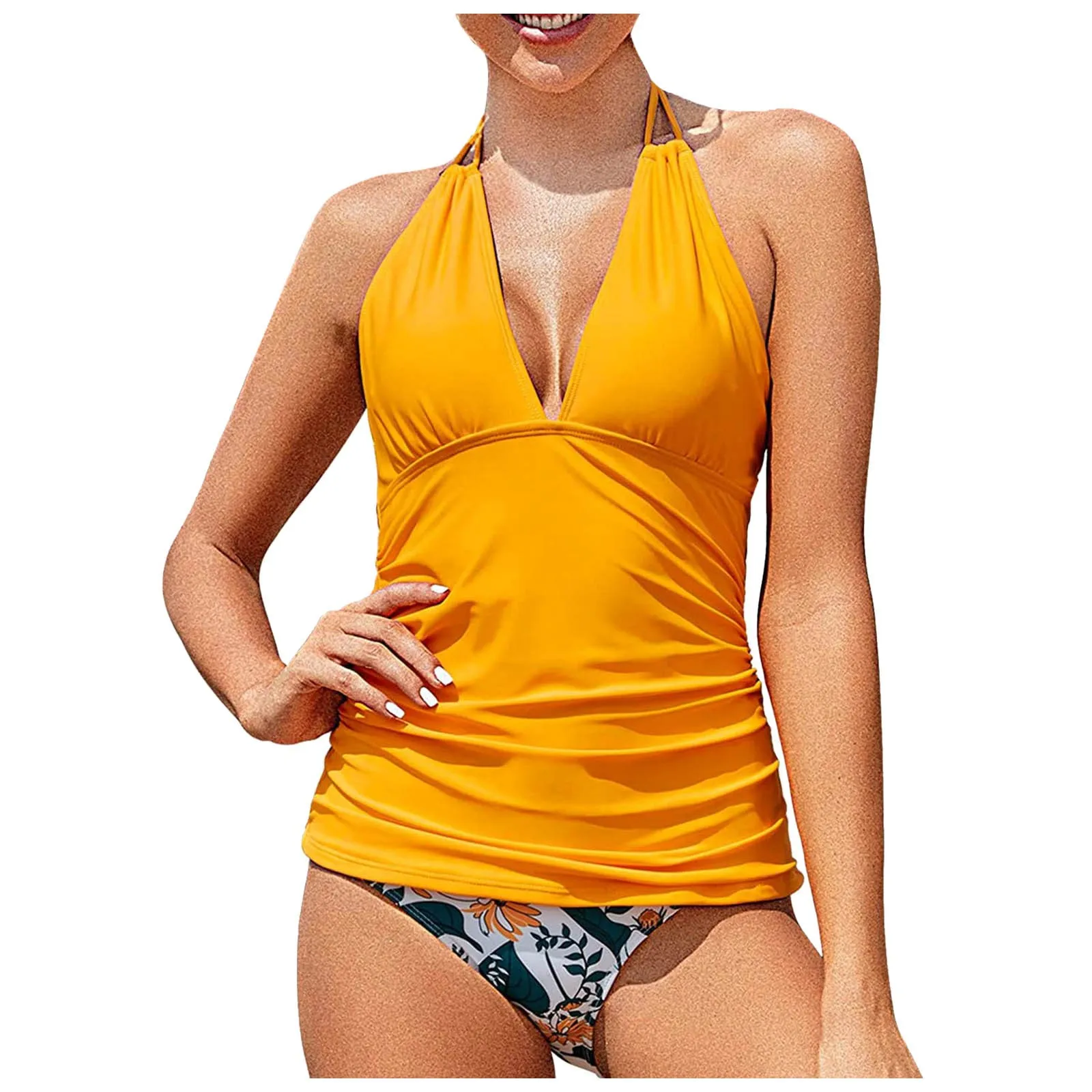 Womens Tankini Swimsuits V Neck Tankini Tops With Bikini Bottom Two Piece Bathing Suits