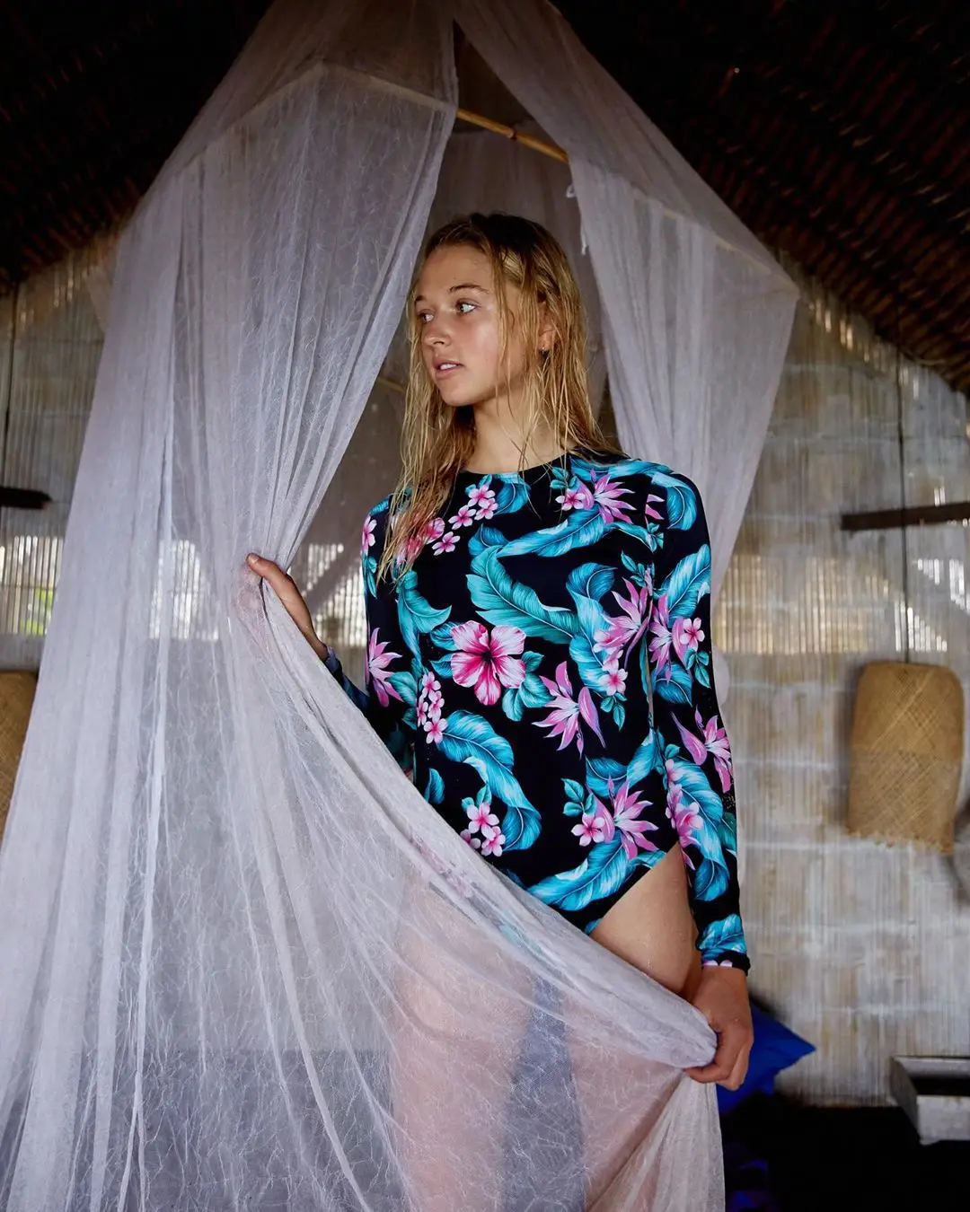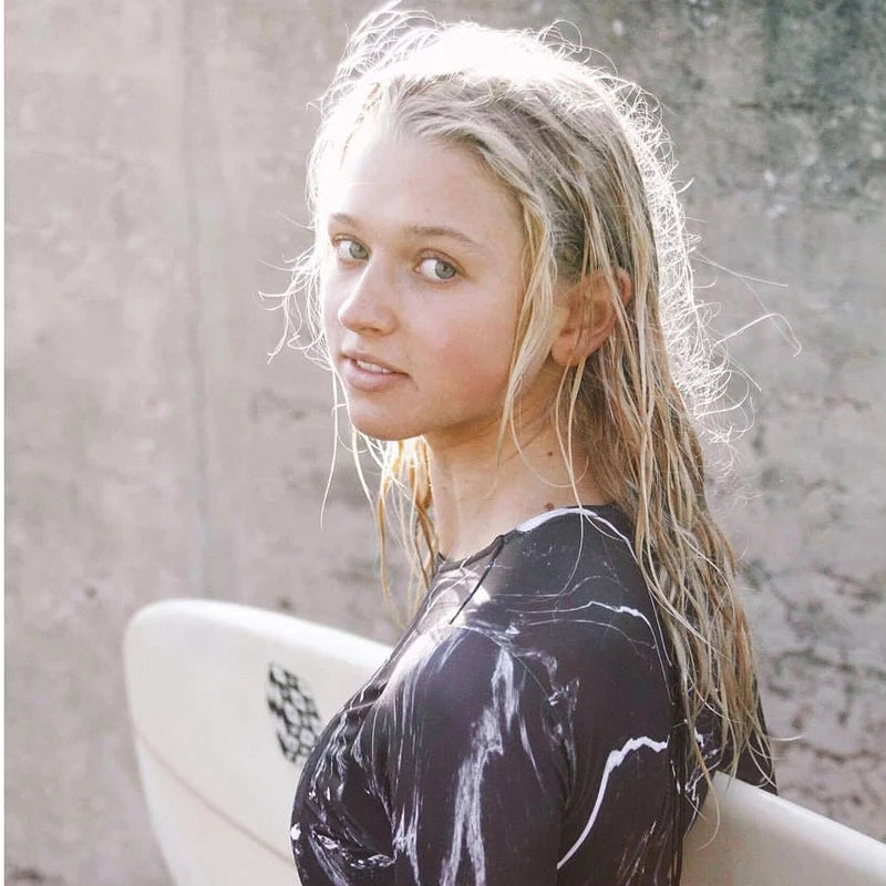 Stay protected and stylish with this long-sleeve one-piece swimsuit, designed for active swimmers and beach enthusiasts. The vibrant floral pattern adds a feminine touch, while the front zipper allows easy on-and-off convenience. Built-in UPF sun protection shields your skin from harmful rays during extended water activities. The long sleeves provide additional coverage for shoulders and arms, making it ideal for surfing, swimming, or casual beach wear. Durable construction ensures lasting comfort through countless aquatic adventures.