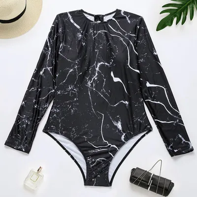 Women's Swimsuit Long Sleeve Swimsuit Floral Swimwear One Piece Sun Protection Zipper Surf Swiming Lady Female Beach Suit