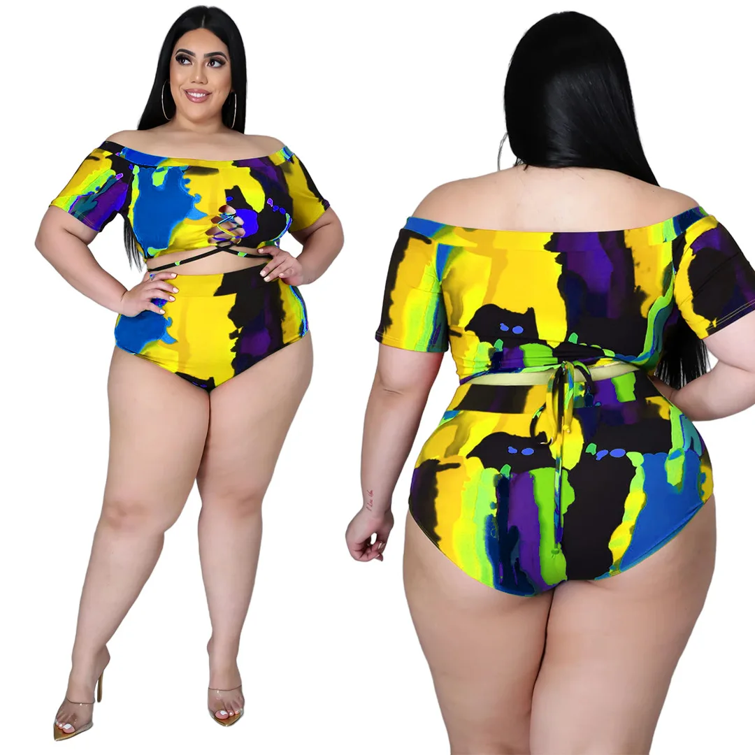 XL-5XL Plus Size two piece Bikini set Swimsuit summer printing Bandage top and shorts outfits women
