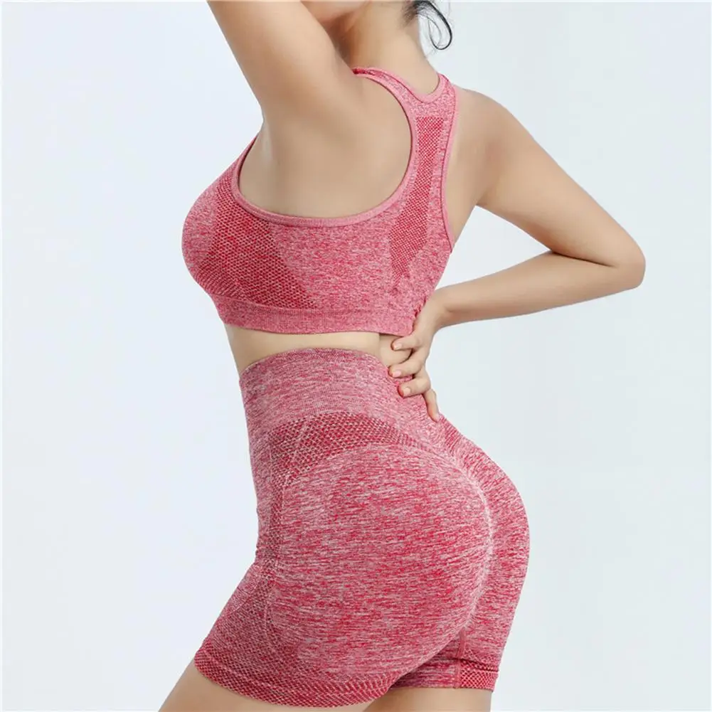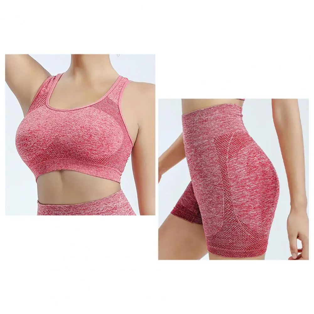 2 Pcs/Set Women Sports Suit Push-up Sleeveless Vest with Chest Pads Seamless Quick-drying High Waist Shorts Sportwear Yoga Fitness Daily Wear Tracksuit
