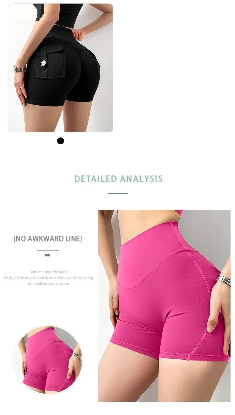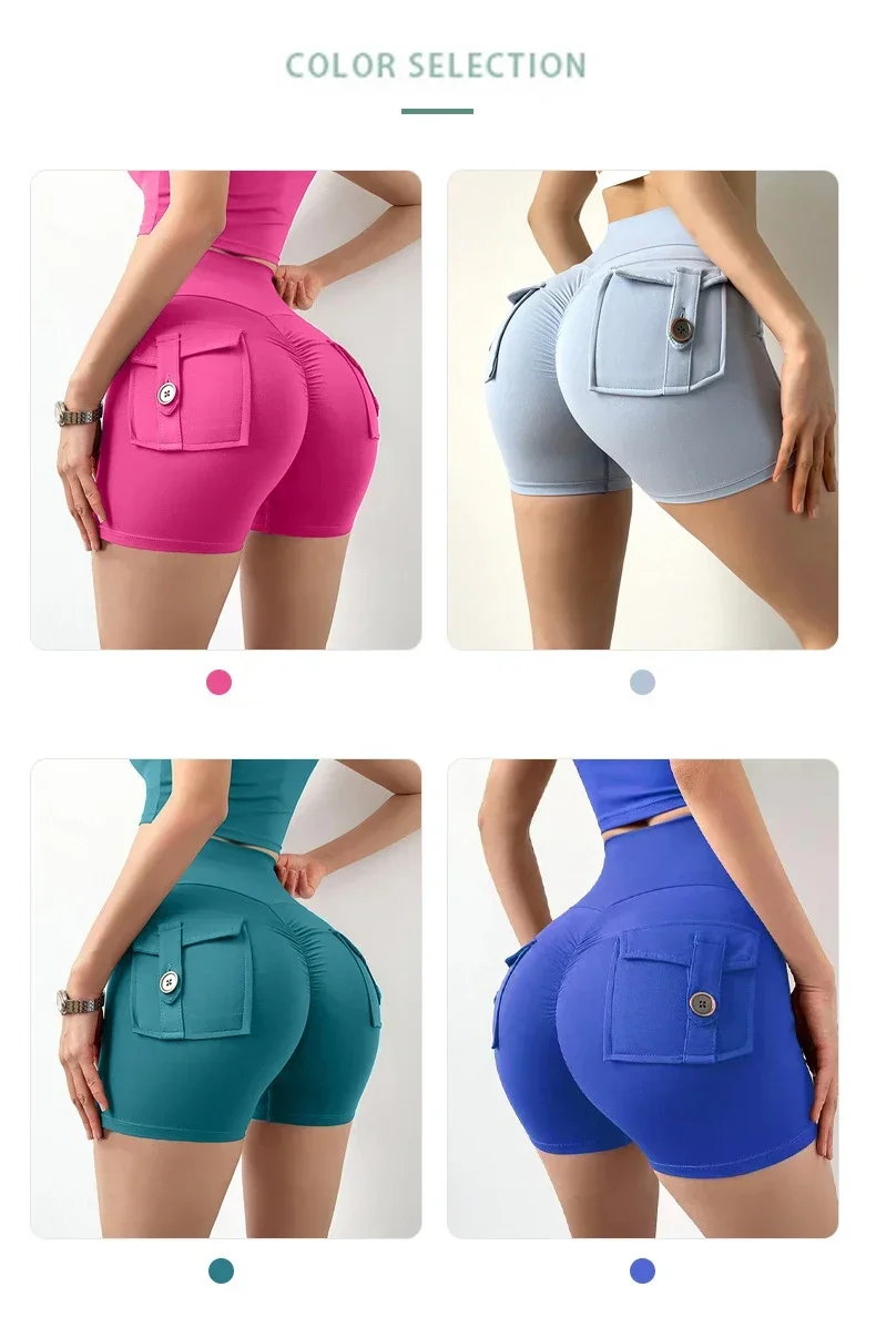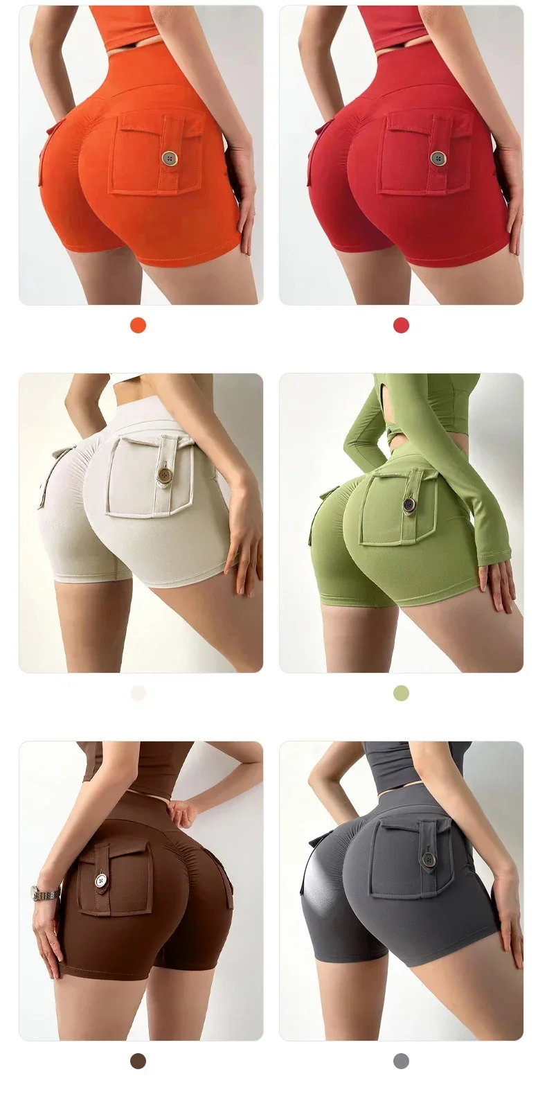 Yoga Shorts for Women Pocket Scrunched Butt Gym Leggings High Waist Push Up Tights Sports Shorts Fitness Running Shorts