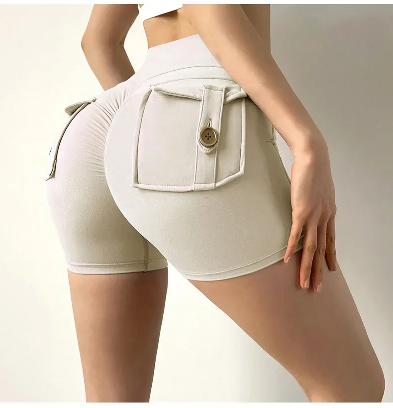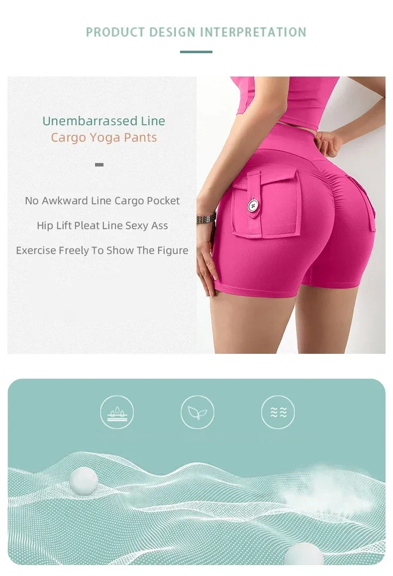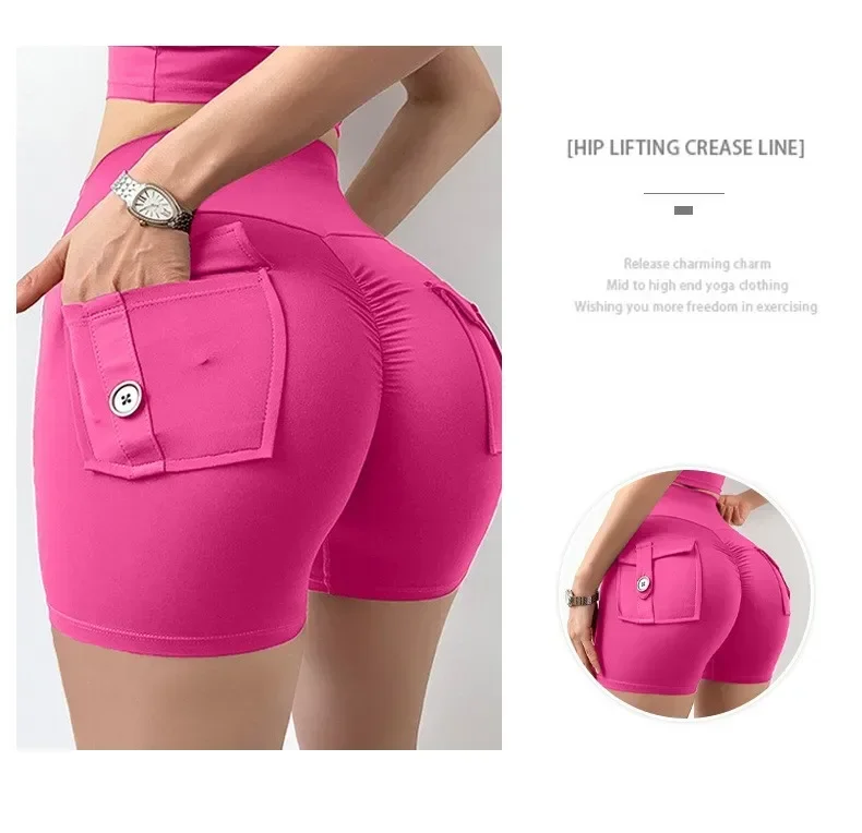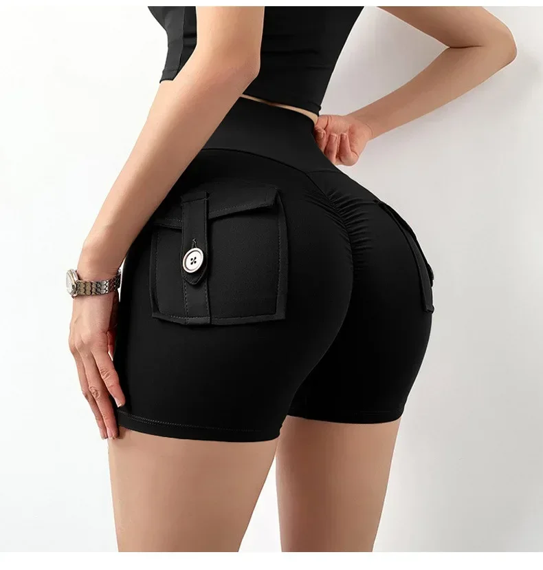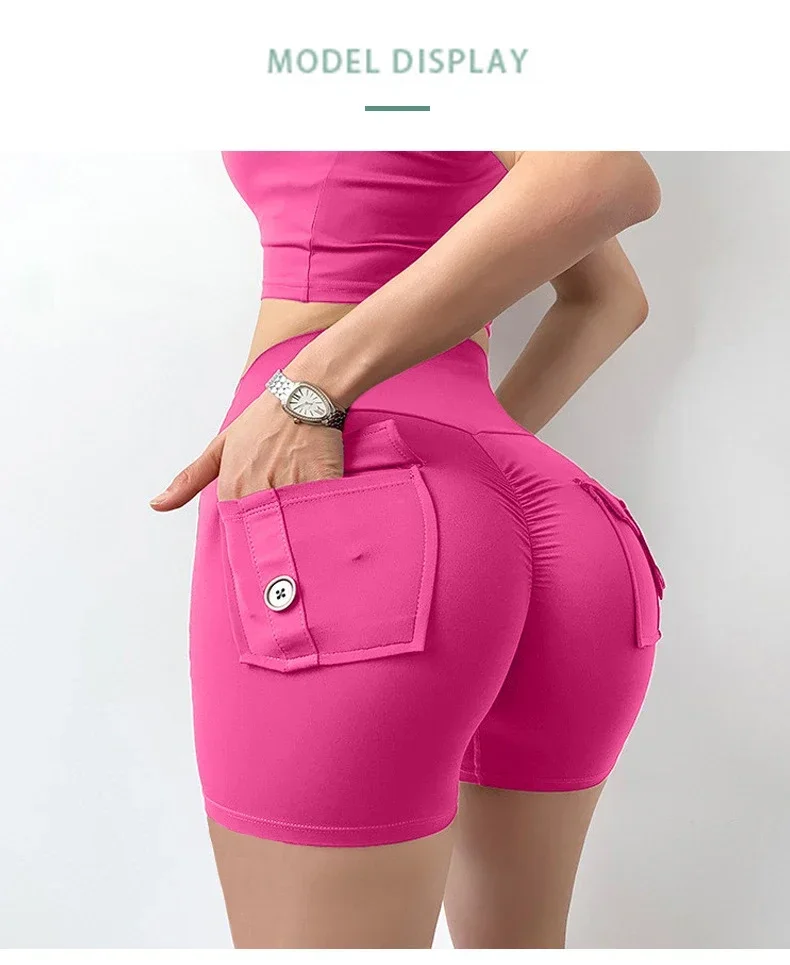 Yoga Shorts for Women Pocket Scrunched Butt Gym Leggings High Waist Push Up Tights Sports Shorts Fitness Running Shorts
