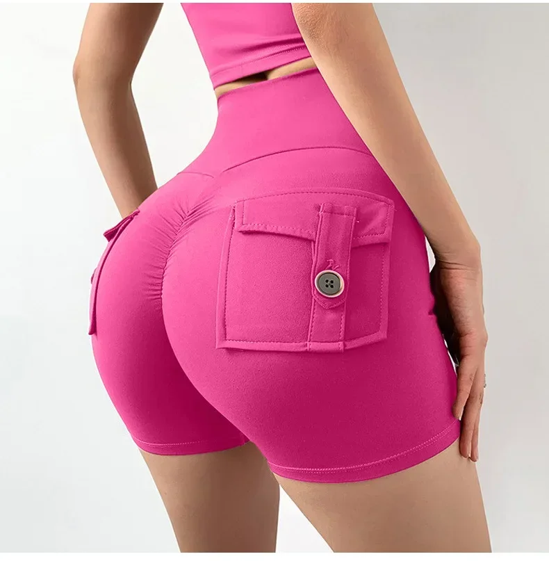 These high-waist yoga shorts combine functional design with flattering aesthetics. The scrunched butt detail creates a sculpted silhouette while the built-in pocket offers convenient storage for essentials during workouts. Engineered with push-up support and a secure high-waist fit, they provide stability and confidence through yoga, running, gym sessions, and everyday activities. The stretchy, breathable fabric moves with your body, delivering comfort whether you're holding poses or hitting cardio. Perfect for athletes seeking performance-driven shorts that don't compromise on style.